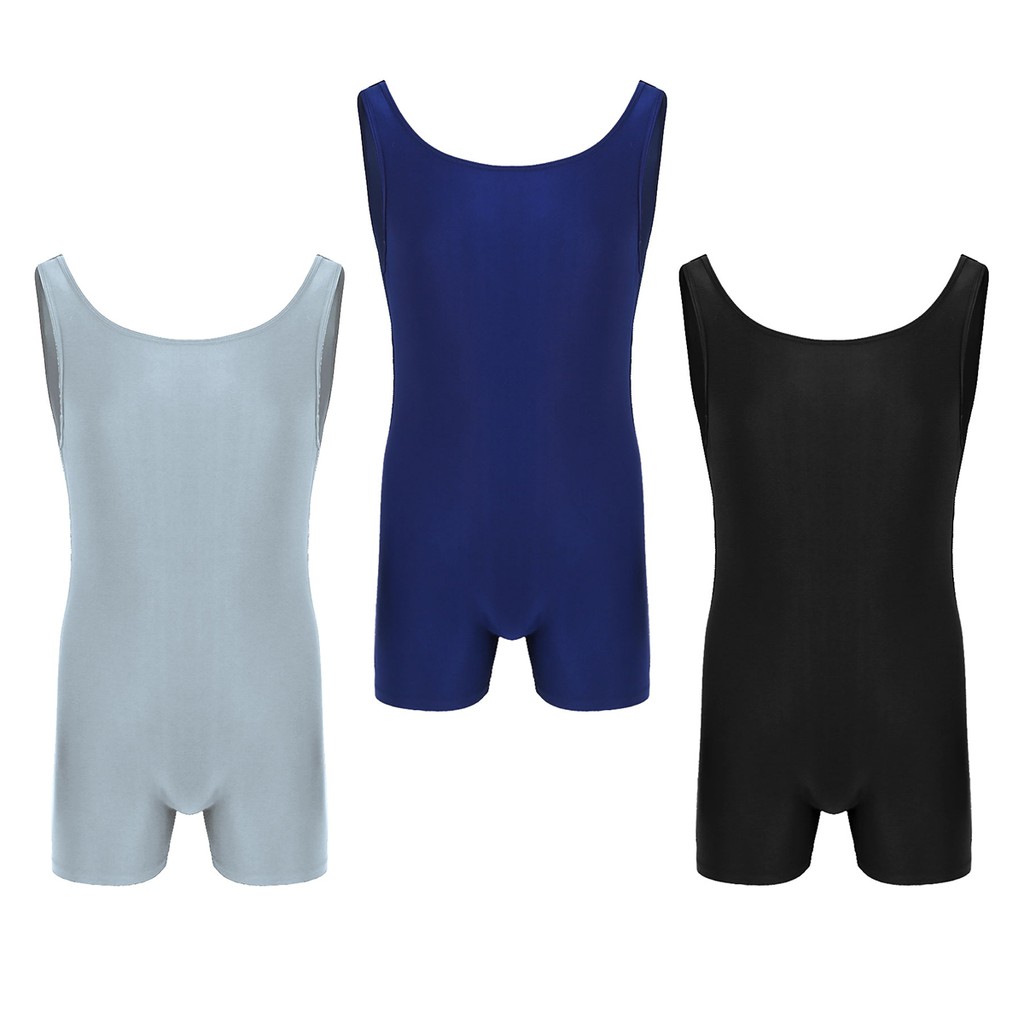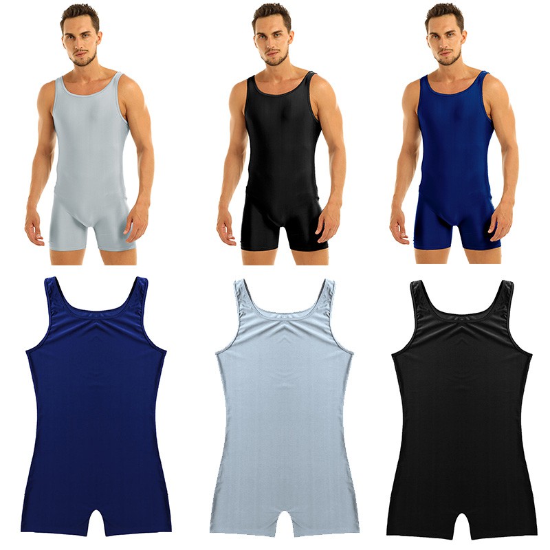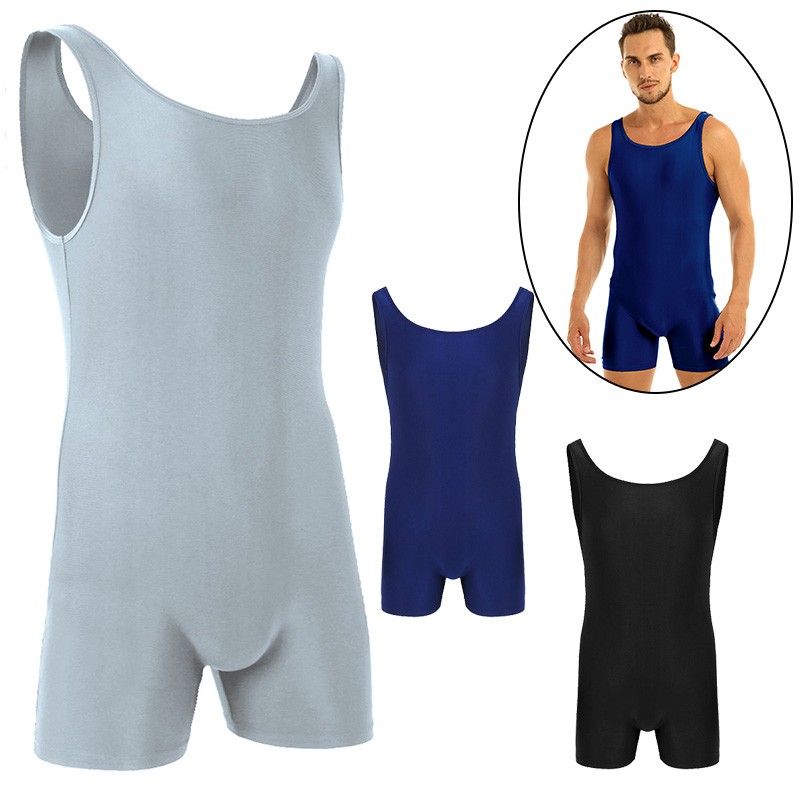 Mens Spandex ถังสั้นแขนกุดยืดกีฬายิมบอดี้สูทมวยปล้ําเสื้อกล้าม Leotard Dance Biketard Unitard