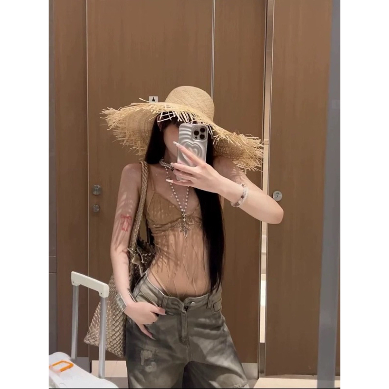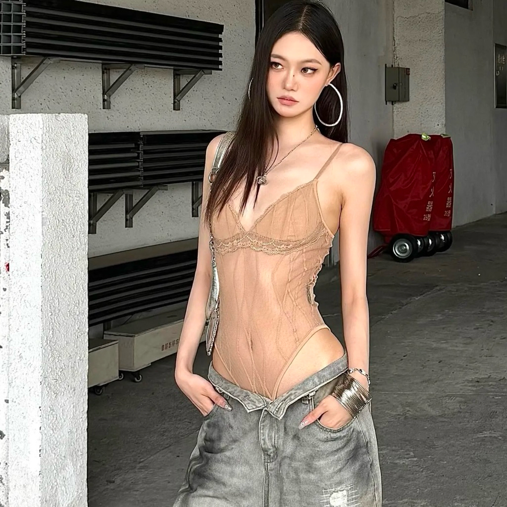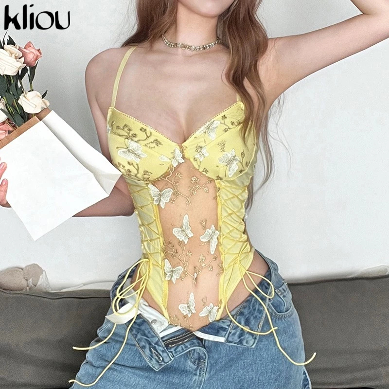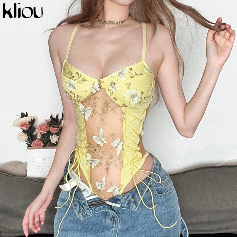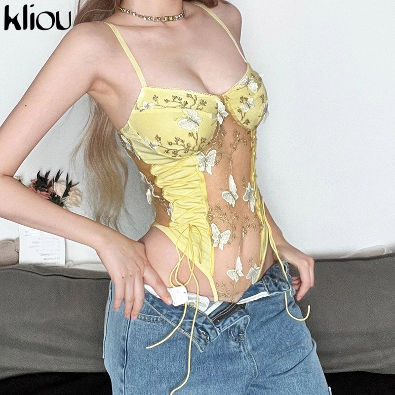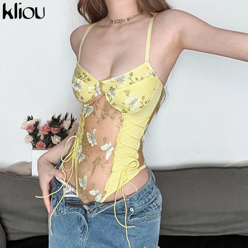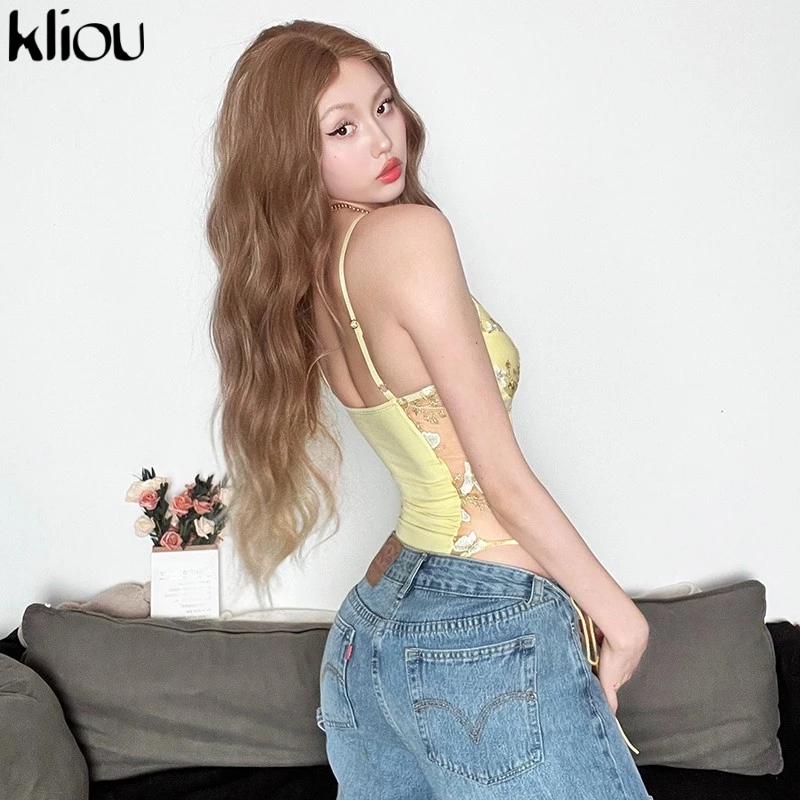 Kliou เซ็กซี่ Casual บอดี้สูทสลิง Off แขน Cleavage ดูผ่านอเนกประสงค์ฤดูร้อน Street บรรยากาศแฟชั่นสไตล์ Hot Chick 2024 ใหม่
