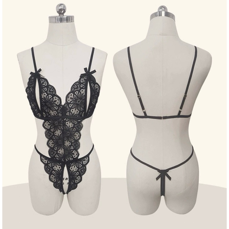 “พร้อมจัดส่ง” ชุดบอดี้สูทลูกไม้ คอวีลึก ดีไซน์เปิดหลัง ผ้าใส่สบาย มี3 สีให้เลือก (ฺJS-2051)