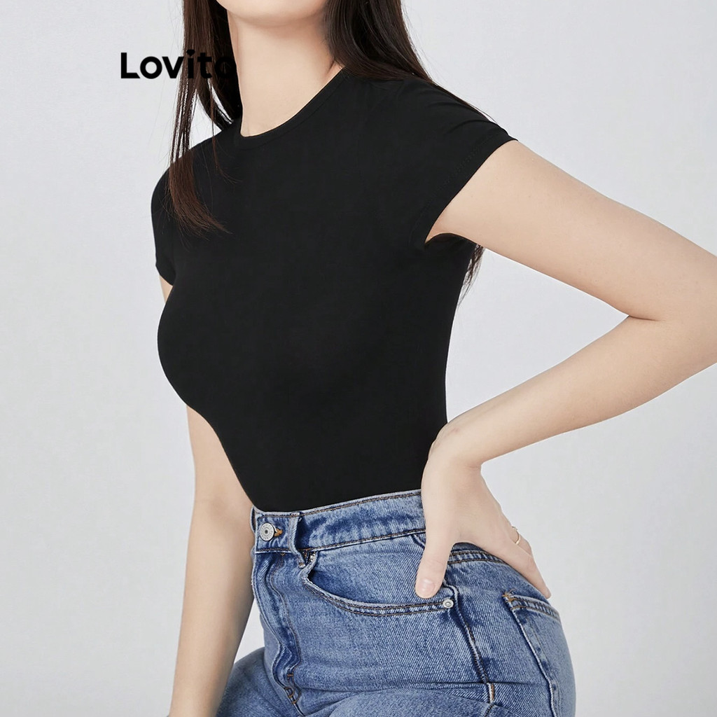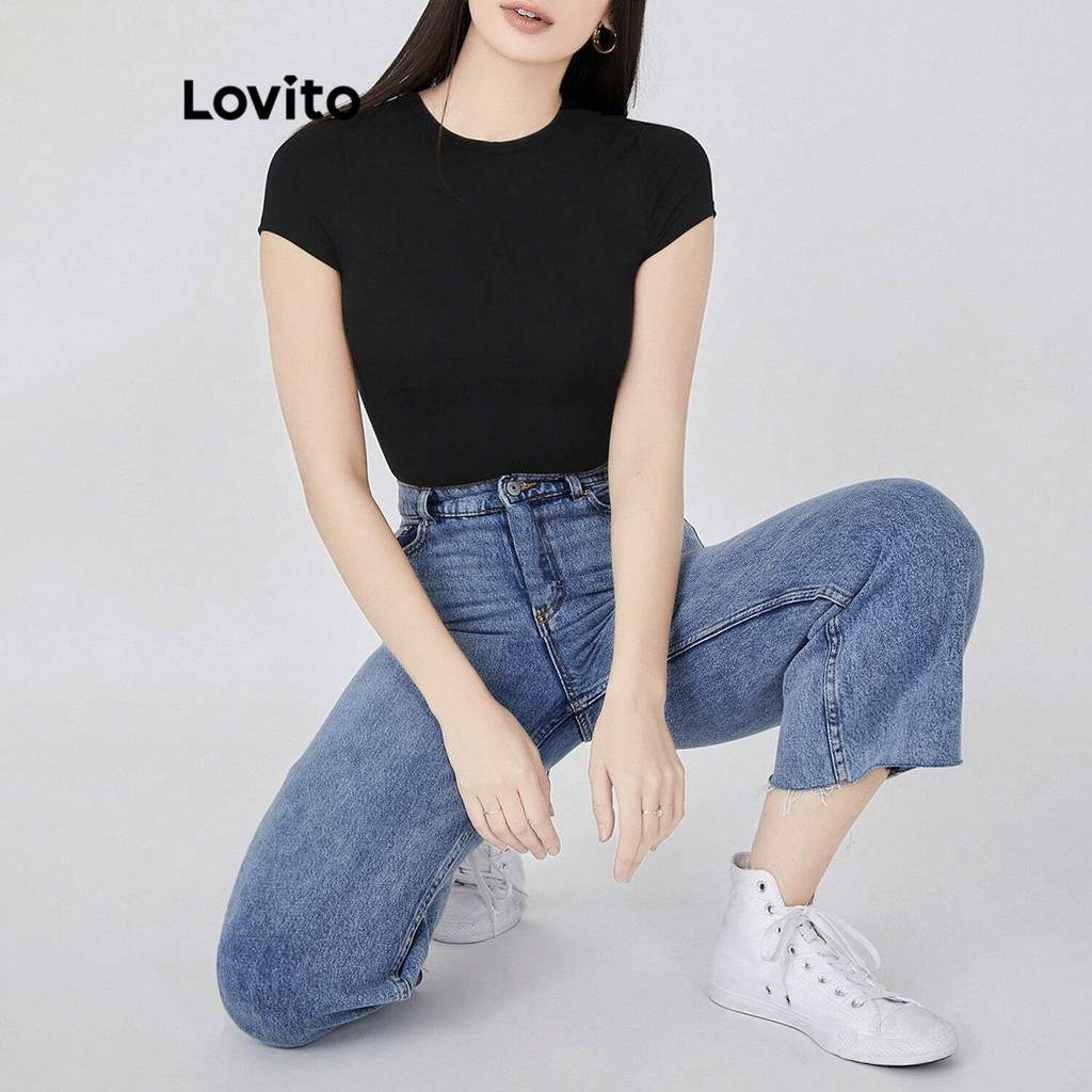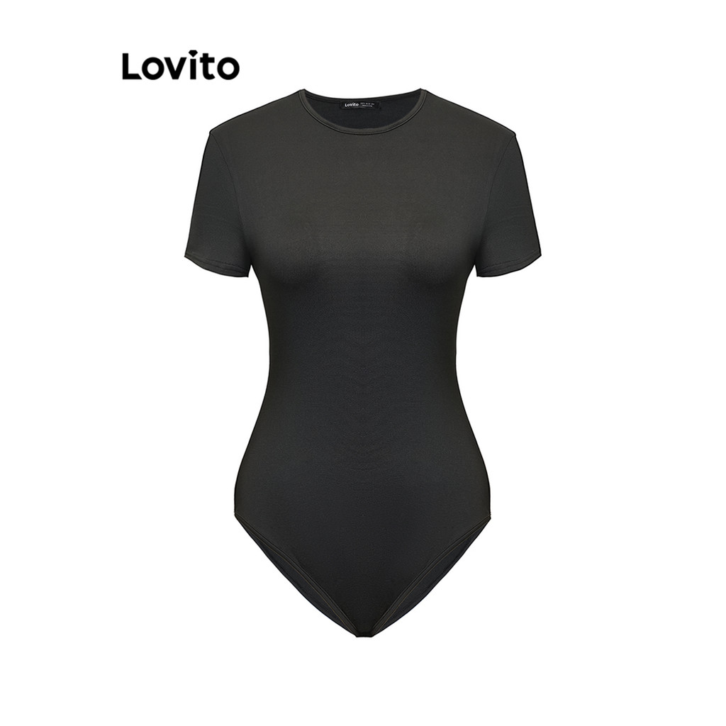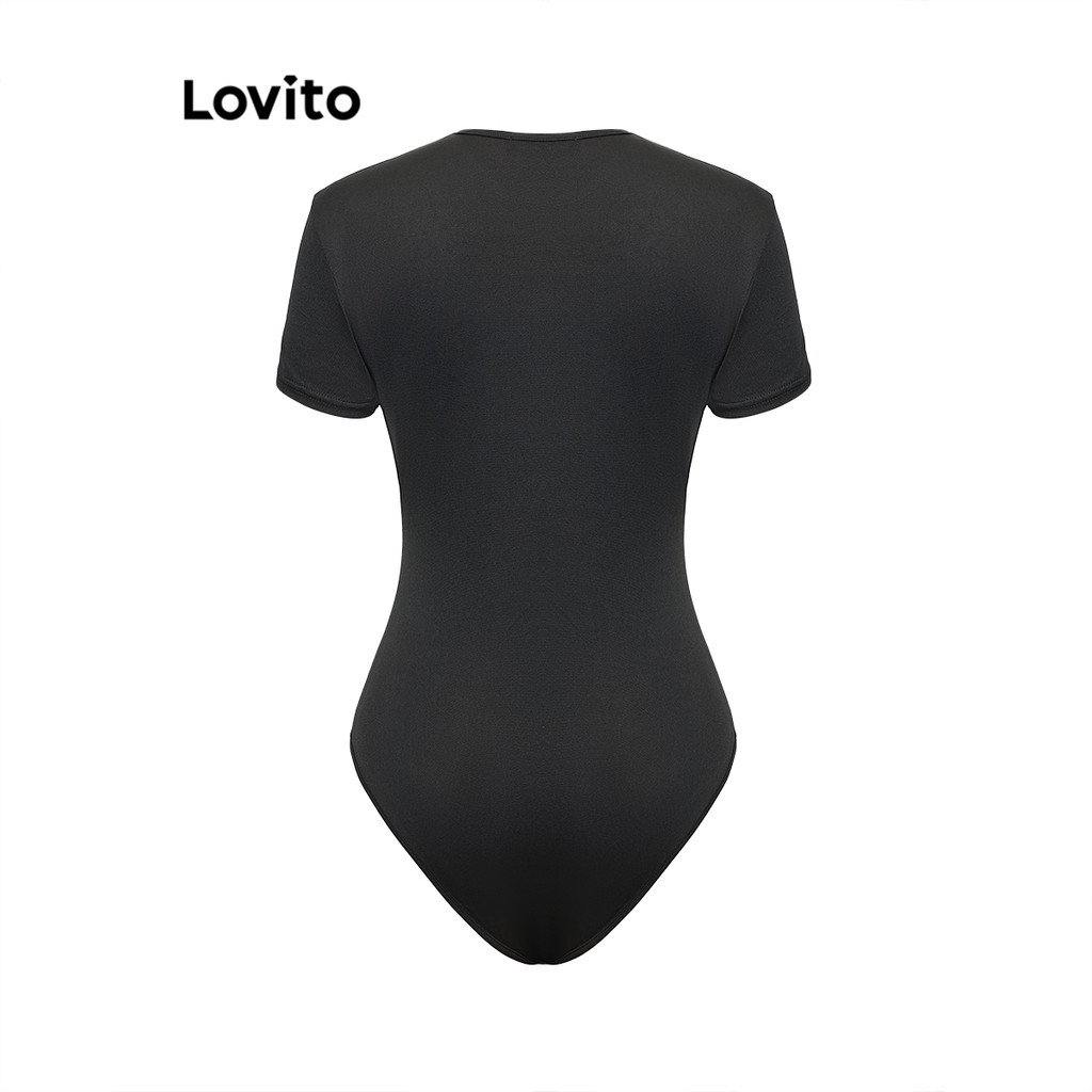 Lovito ชุดบอดี้สูทลําลอง ชุดบอดี้สูท สีพื้น สําหรับผู้หญิง L87ED251