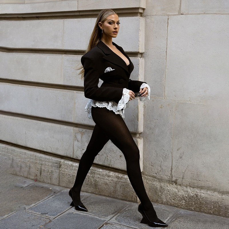 Cutenew ชุดบอดี้สูทเซ็กซี่ Solid Off แขน Skinny บุคลิกภาพ Niche Hot Chick ดูทินเนอร์แฟชั่นบรรยากาศสไตล์ Hot New