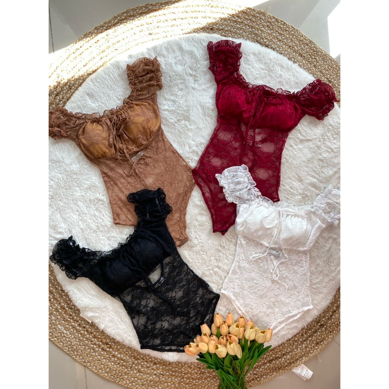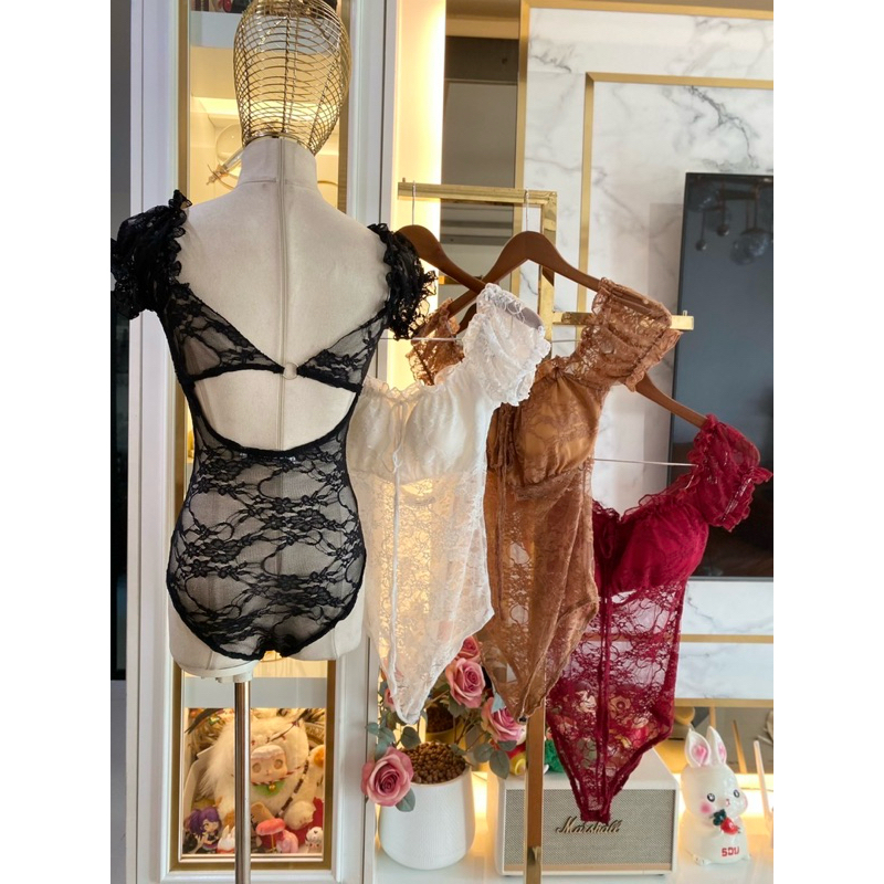 mnv_shop bodysuit บอดี้สูทแขนตุ๊กตา ผ้าลูกไม้ทั้งตัว มีชับในตรงอก