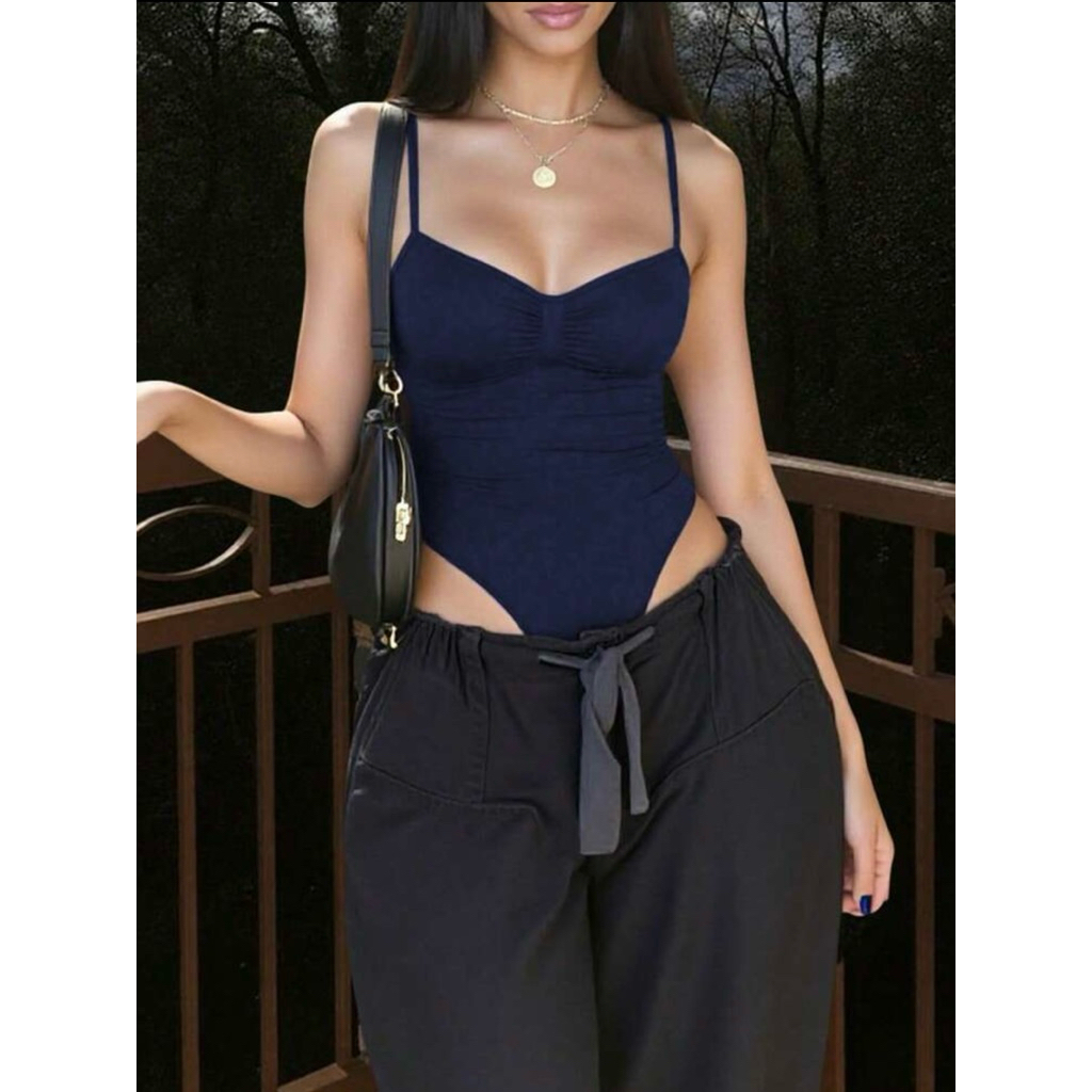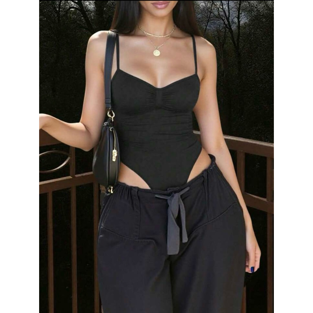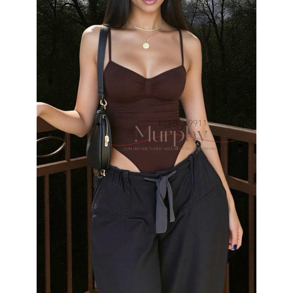 Crush💘ชุดสายเดี่ยวเซ็กซี่ บอดี้สูทเปิดเป้า คอวีลึก เอวแต่งระบาย เนื้อผ้าดี🛒พร้อมส่งจากไทย (ฺMS-2502)