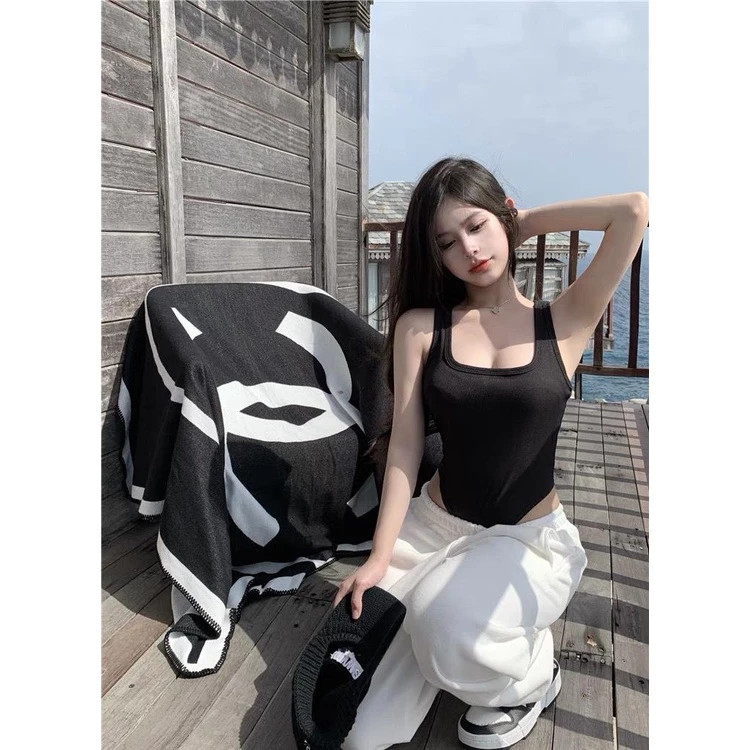 จั๊มสูทคล้องคอฤดูร้อนสุภาพสตรีแขนกุดปิดไหล่บอดี้สูทเซ็กซี่