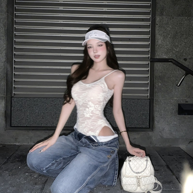 Zephyr-ชุดบอดี้สูท ส่งไวจากไทย เซ็กซี่ ลายลูกไม้ สายเดี่ยว สีขาวครีมดำ เปิดหลัง ผ้านิ่ม มีฟองน้ำ