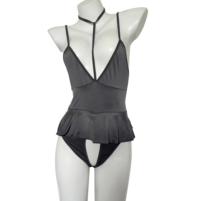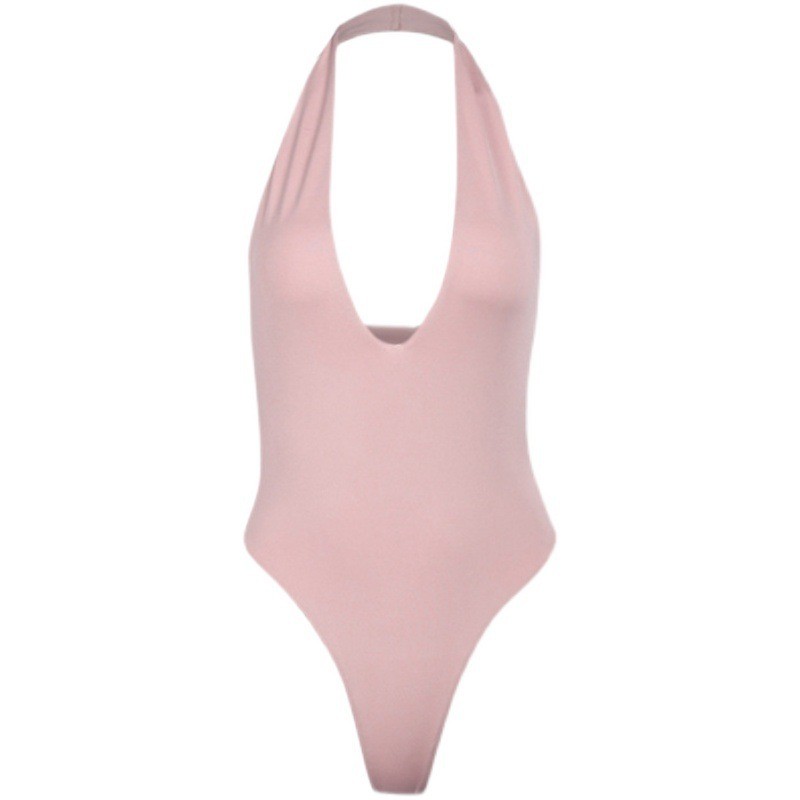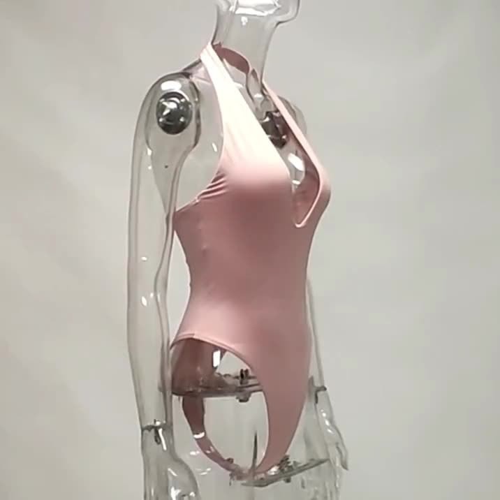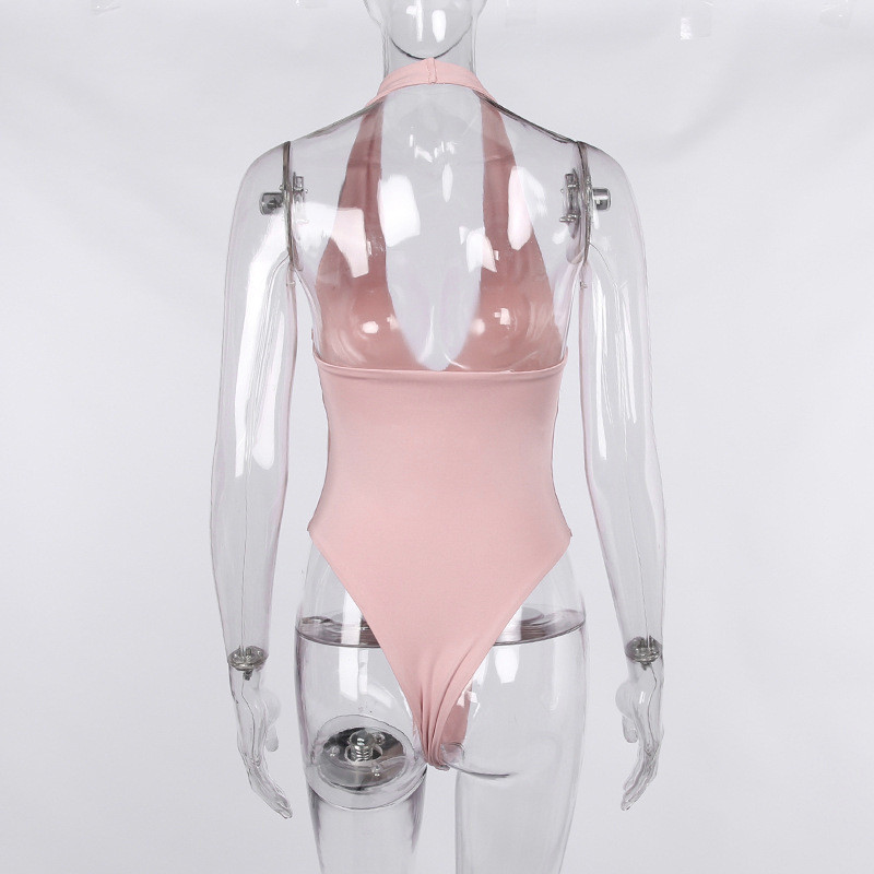 ข66-452 ผู้หญิงเซ็กซี่ Low-cut บอดี้สูทเชือกแขวนคอแน่นยืดหยุ่นชุดกระชับสัดส่วน