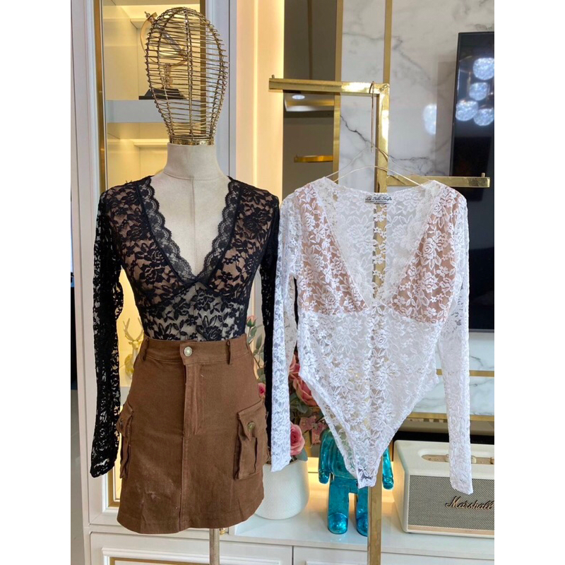 Preme_Shop🌈✅เสื้อลูกไม้ซีทรูแขนยาว+บอดี้สูทแขนยาวเนื้อดี ไม่ระคายผิว ลูกไม้นิ่ม