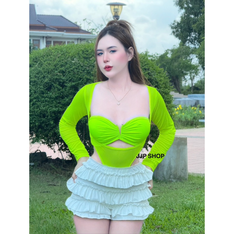 PARTY CITY ชุดยั่วผั่วเซ็กซี่ บอดี้สูทเว้าข้าง สายเดี่ยวโชว์หลัง 🎀 เอวแต่งระบาย เว้าอกคอวี เปิดก้น PC-1229
