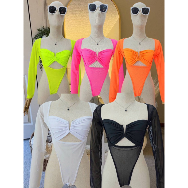 ชุดบอดี้สูท รอมเปอร์ ซีทรู แขนยาว ผ้าเชียร์ รัดรูป สําหรับผู้หญิง