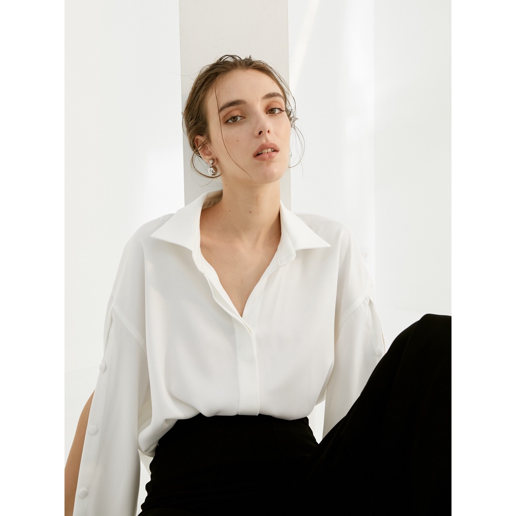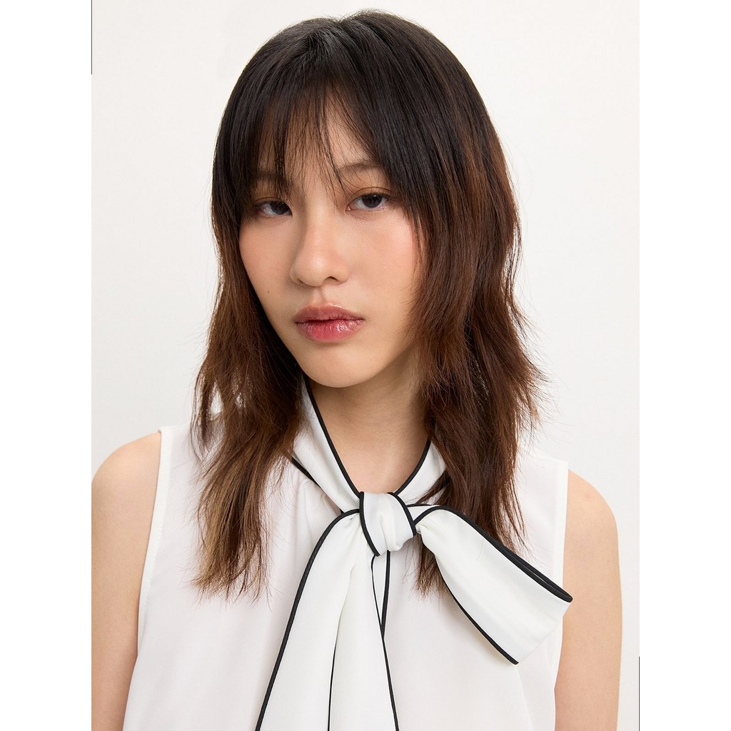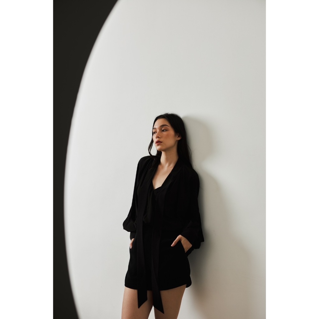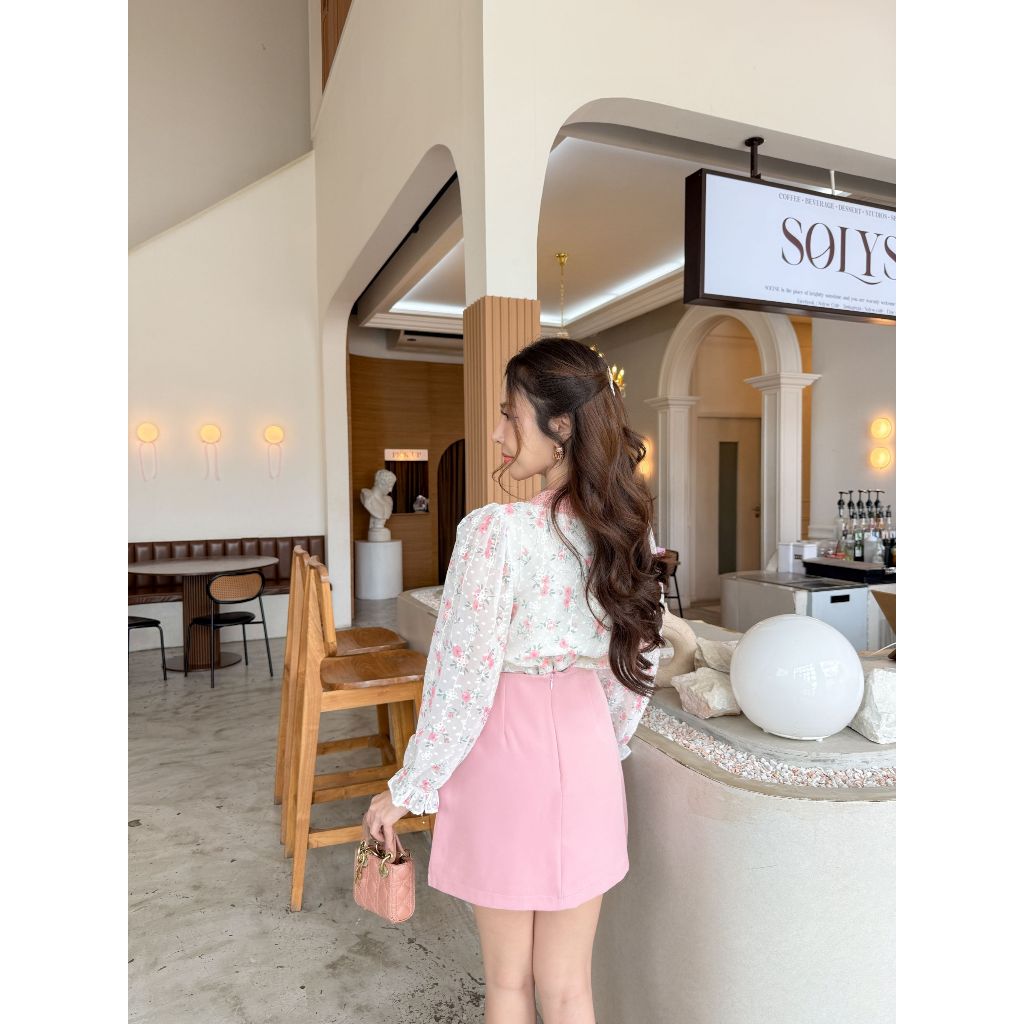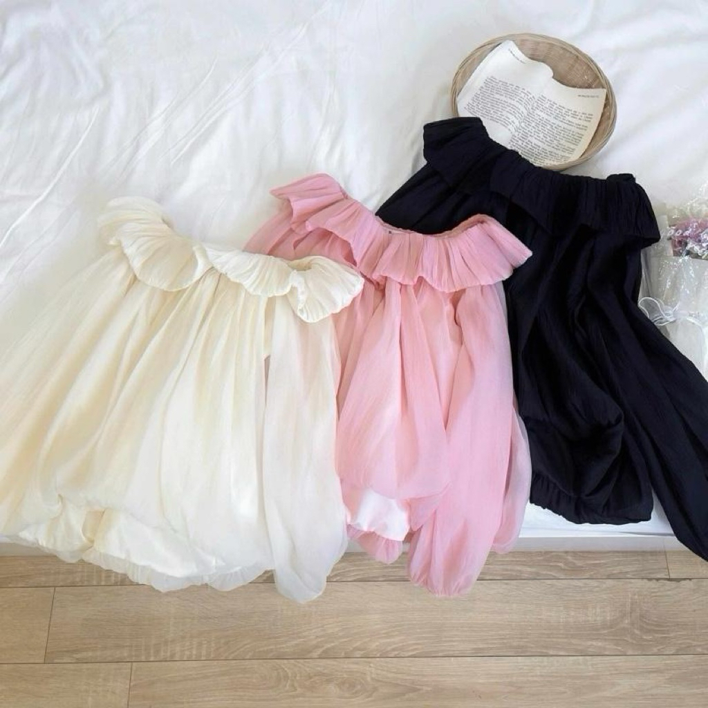 [CREAM Bitter/BLACK/PINK] เสื้อเบลาส์แขนยาวปิดไหล่ SUPER BEAUTIFUL SOFT SILK Chiffon LADY – สําหรับผู้หญิง