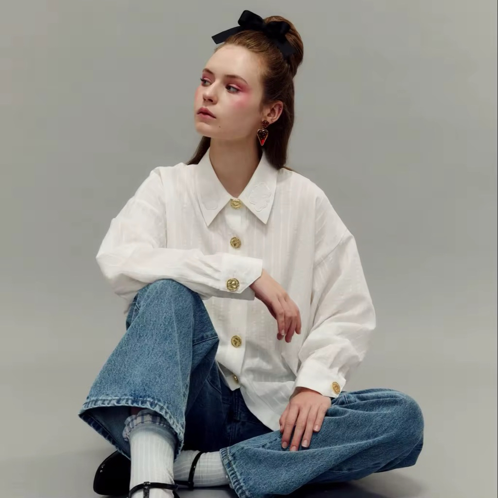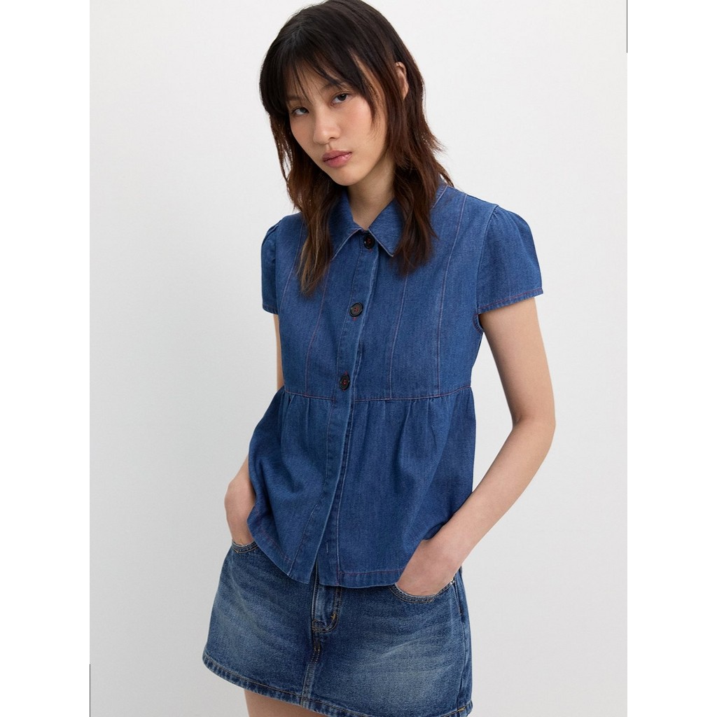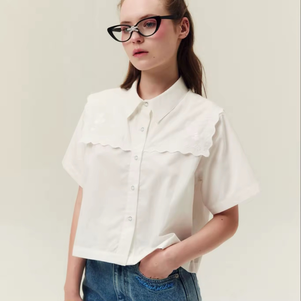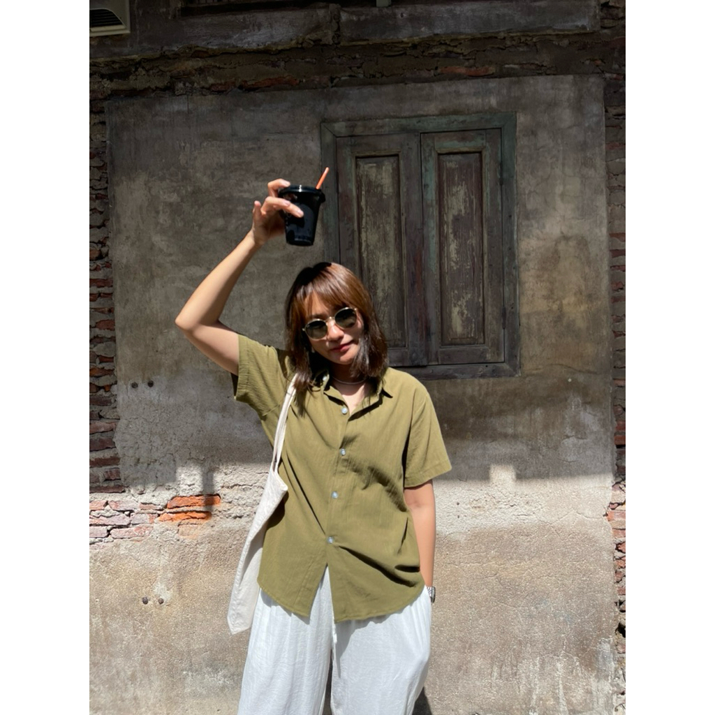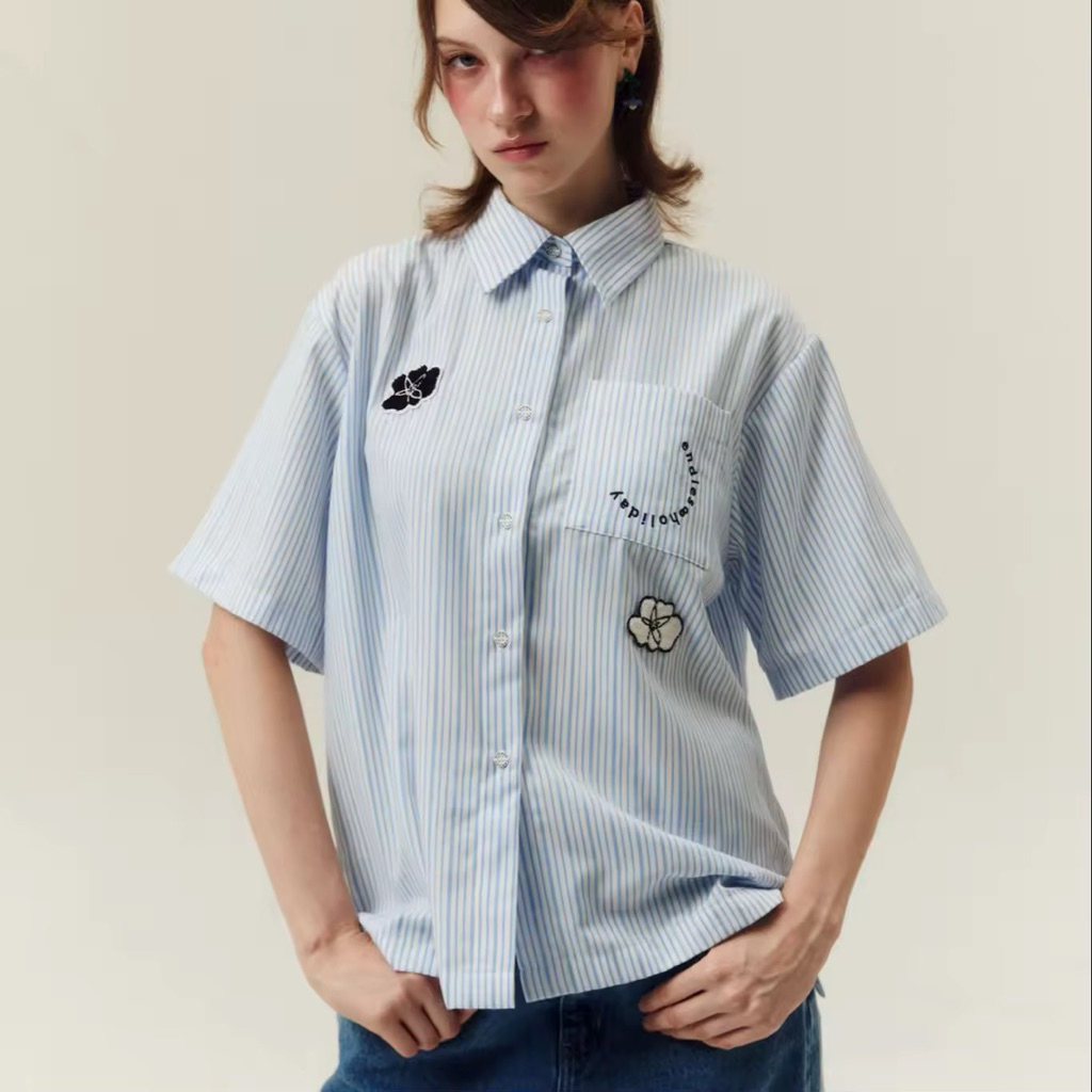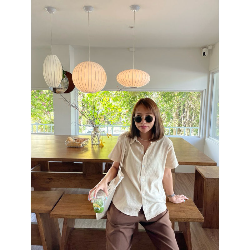 [LININ] เสื้อเชิ้ตแขนสั้นผู้หญิงสไตล์ญี่ปุ่นแบบสบาย ๆ