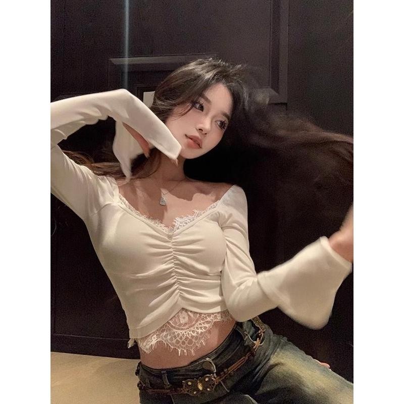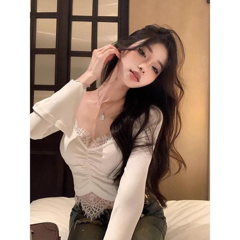 [S-4XL] เสื้อแขนยาวคอบัวลูกไม้ผ้าลายดอกพรีเมี่ยมมีซับใน