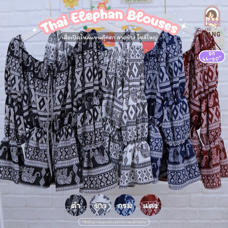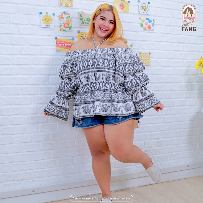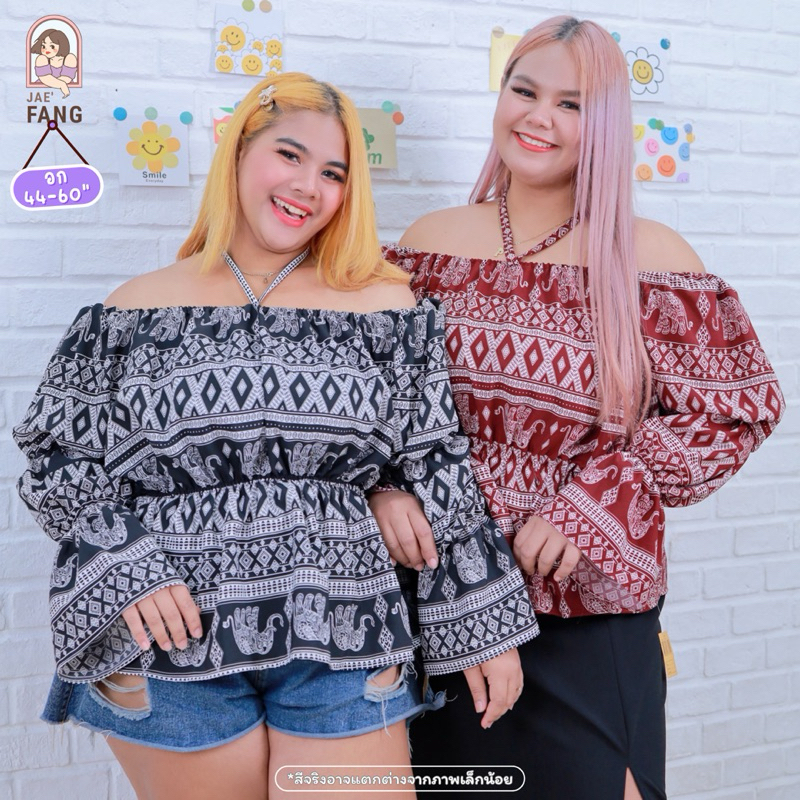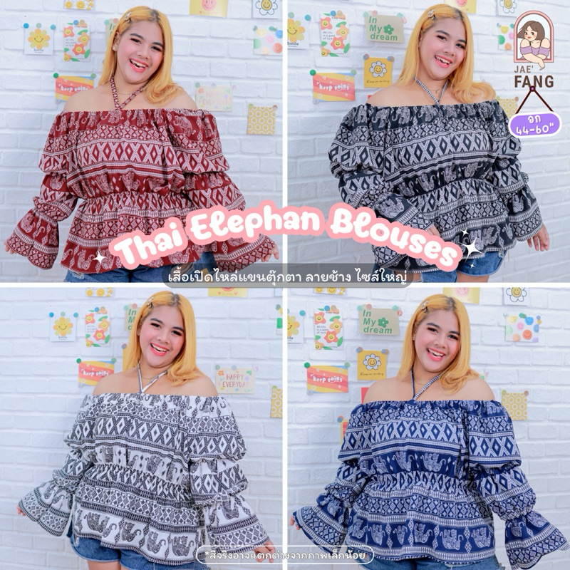 [ ส่งฟรี 🔥 ] A160 เสื้อเปิดไหล่แขนตุ๊กตาลายช้าง เสื้อคนอ้วน เสื้อช้าง สาวอวบ ผ้าไหมอิตาลี ไซส์ใหญ่ พลัสไซส์
