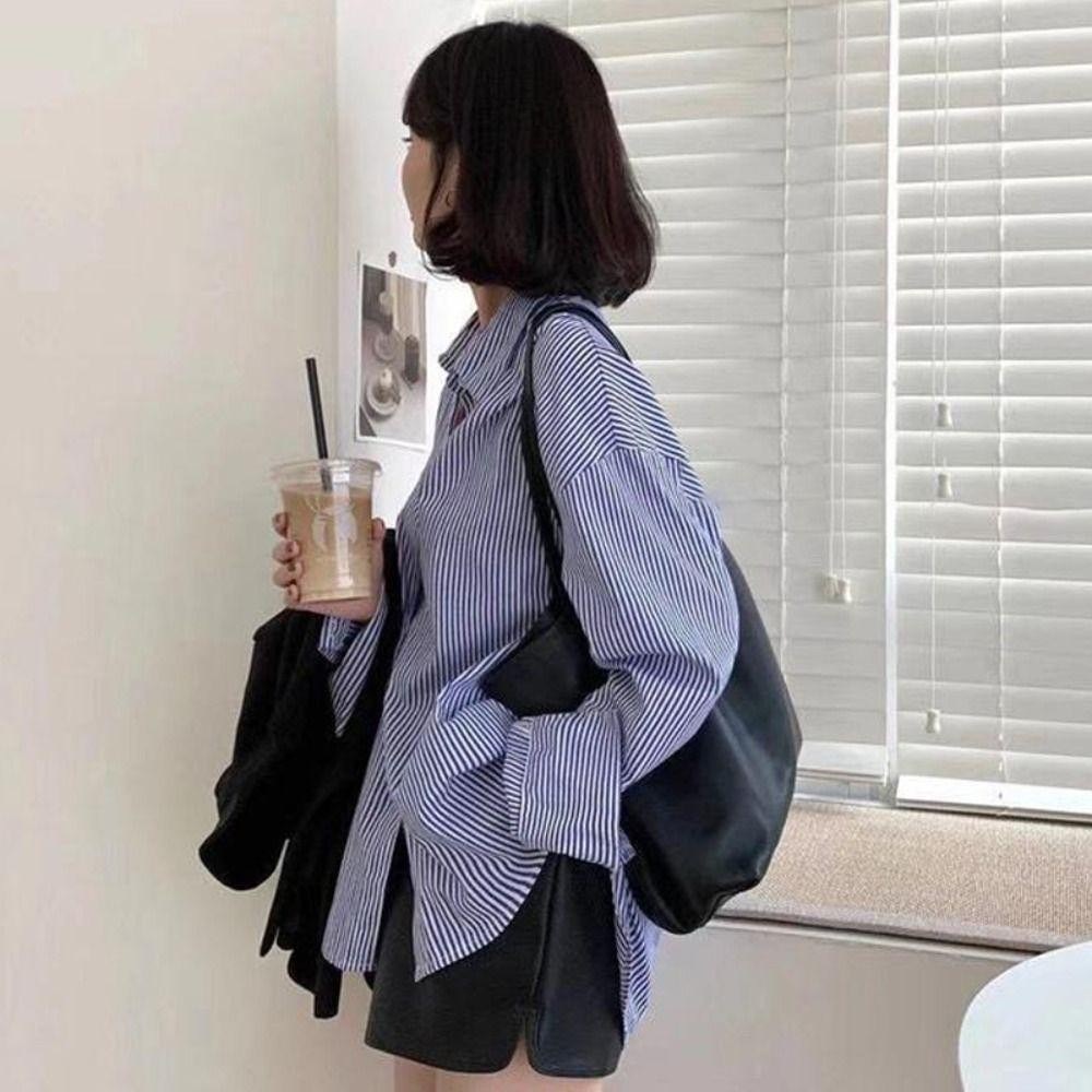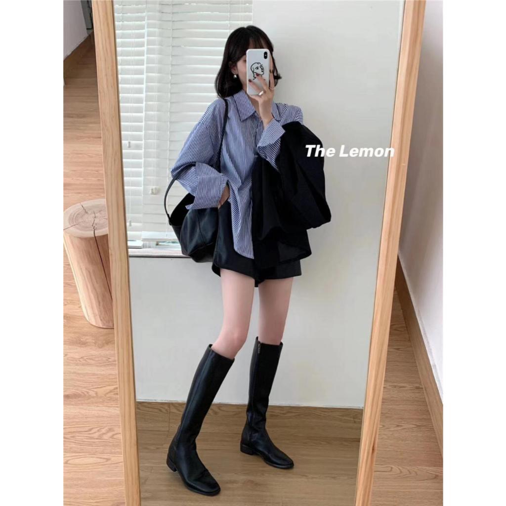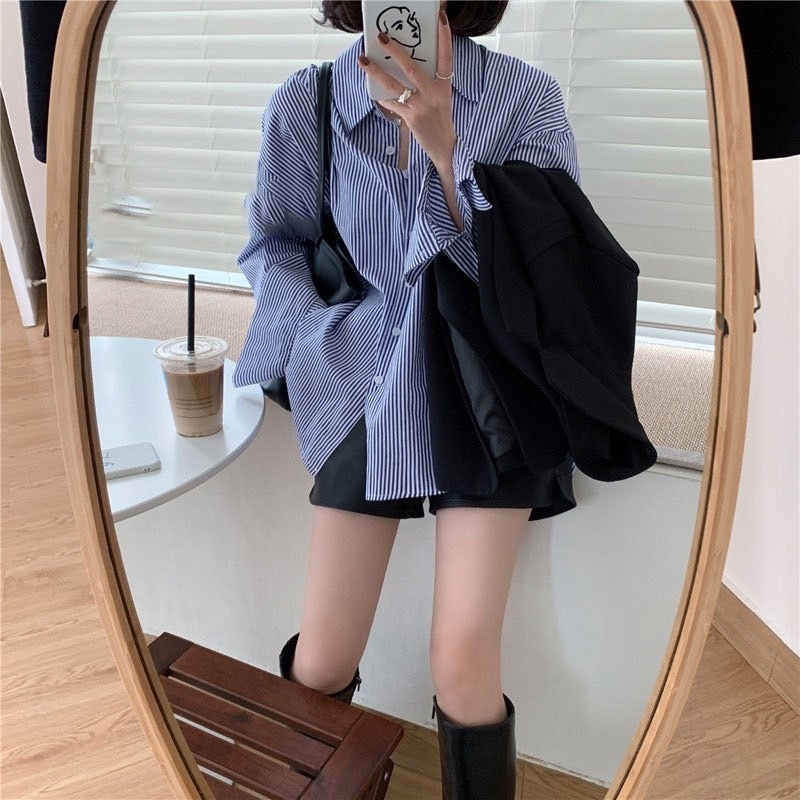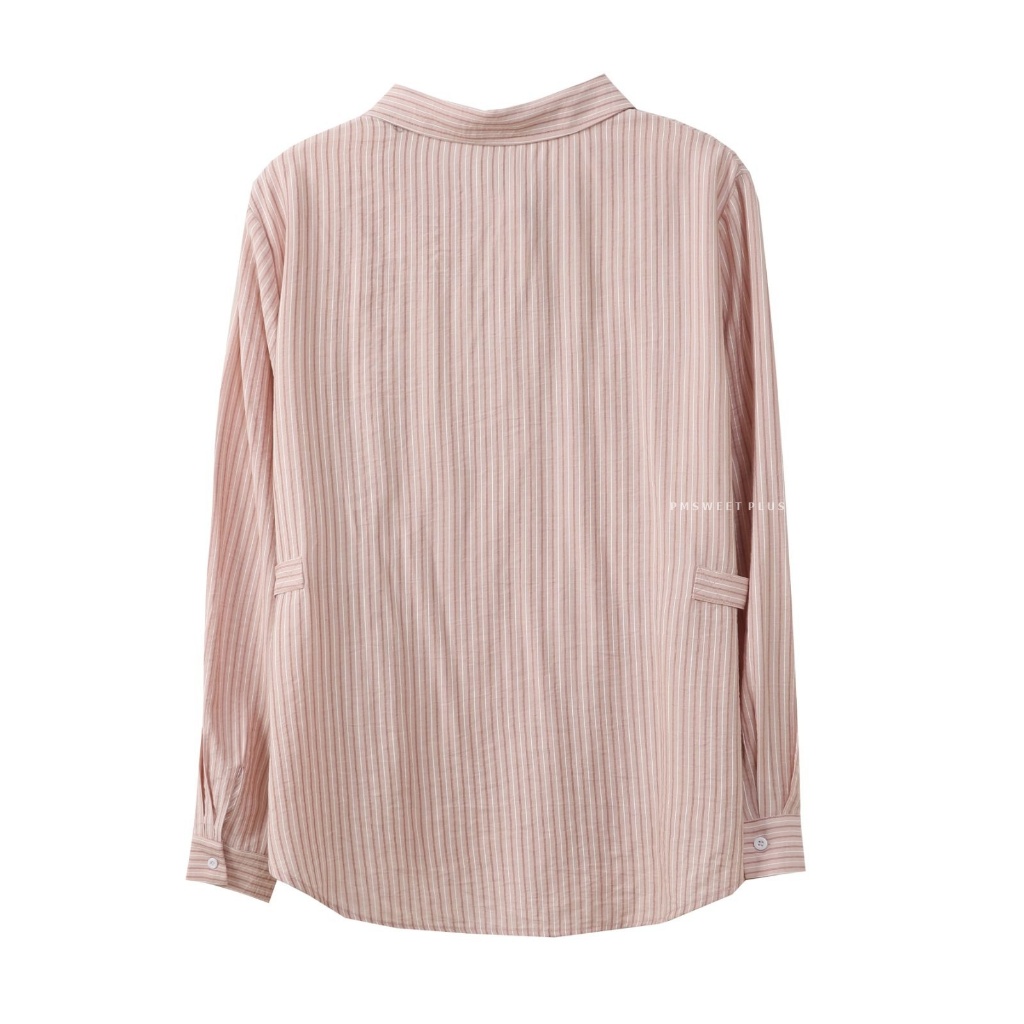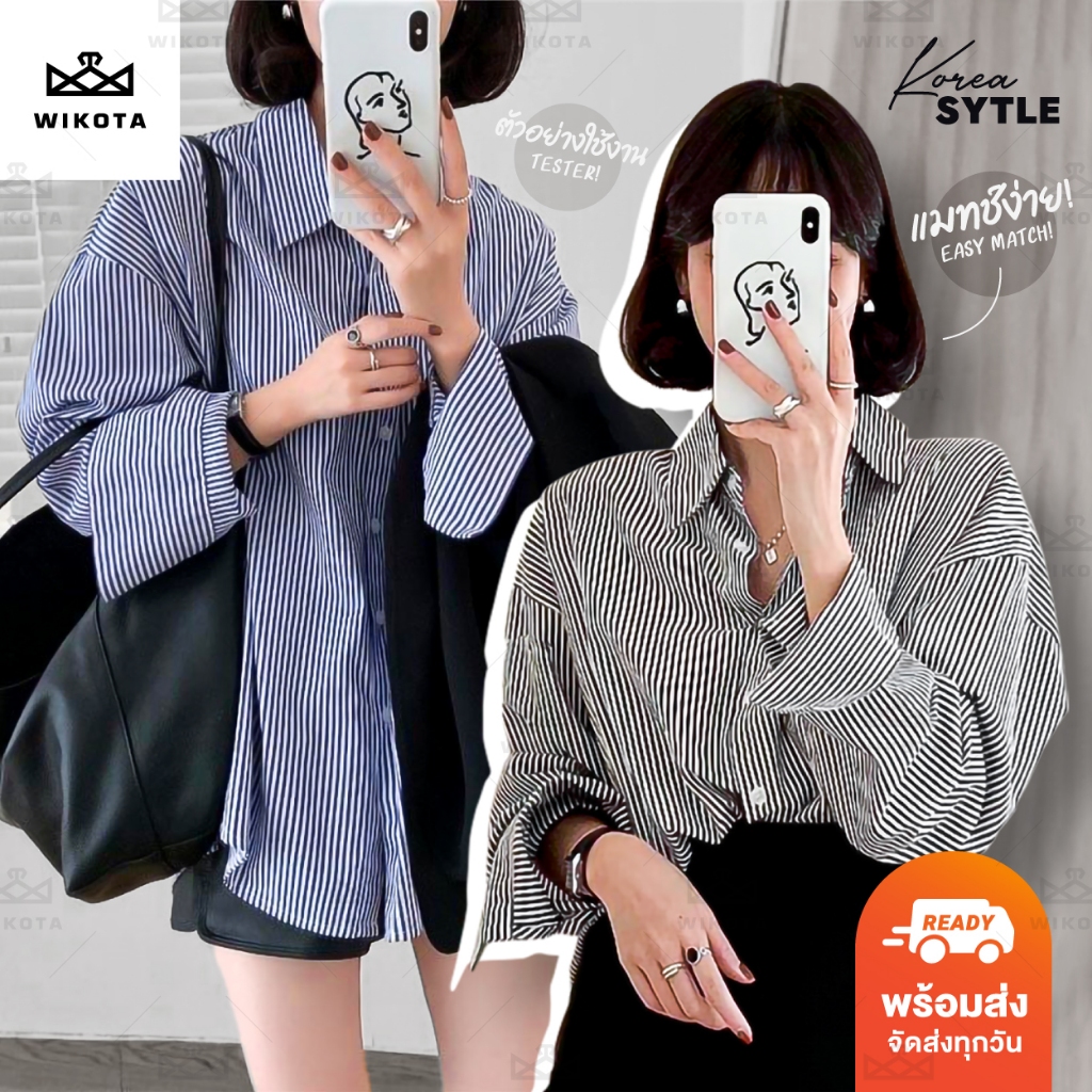 [W0195] เสื้อเชิ้ตคอปกแขนยาวลายทาง เสื้อใส่ทำงาน ใส่ไปเที่ยว ทรงหลวมๆใส่สบาย แมทช์ง่ายได้ทุกลุค