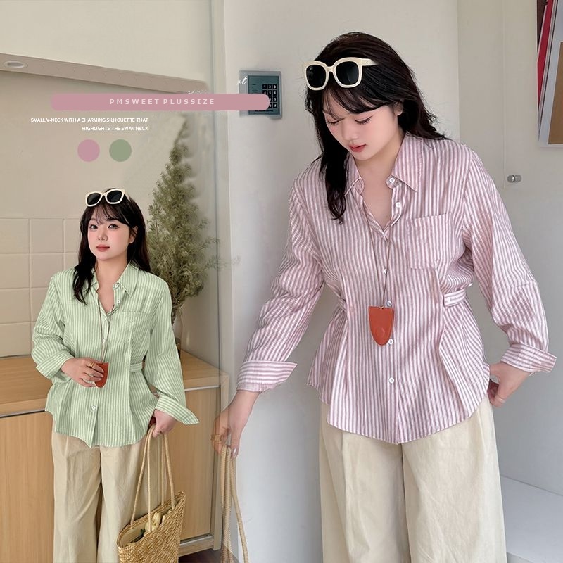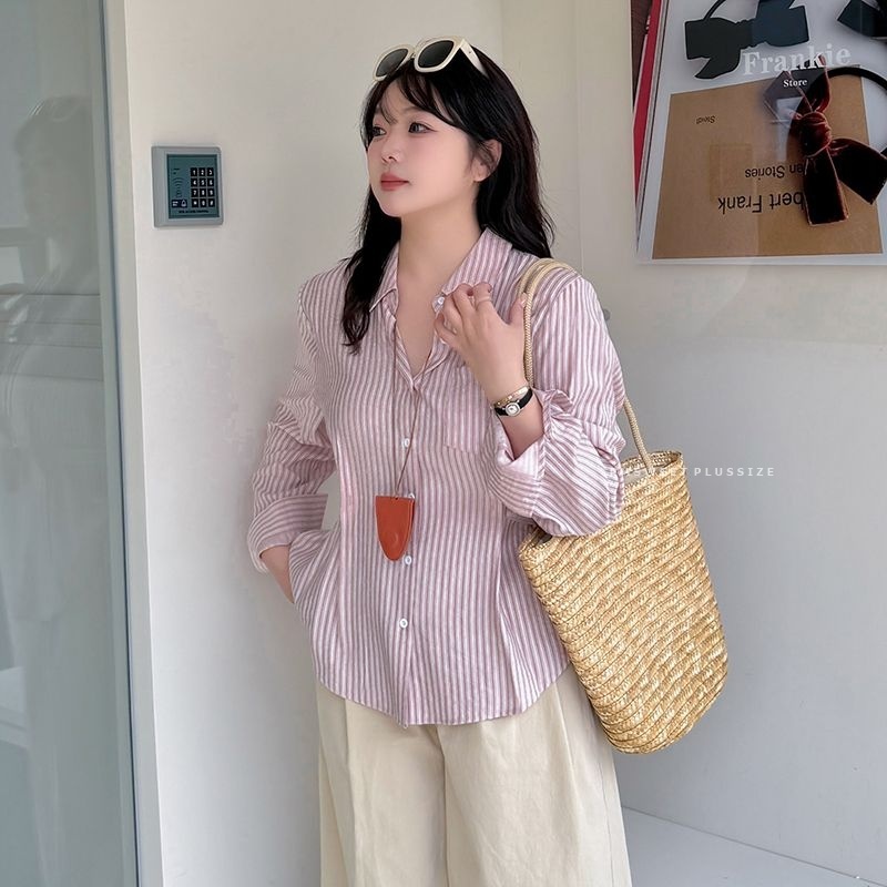 [ 🔥อกถึง 53″ ] : PMP2405 : พรีออเดอร์ เสื้อเชิ้ตลายทาง เสื้อเชิ้ตทรงเข้ารูป สำหรับผู้หญิงไซส์ใหญ่