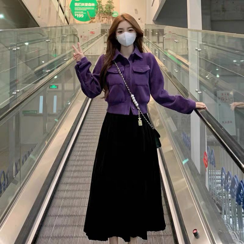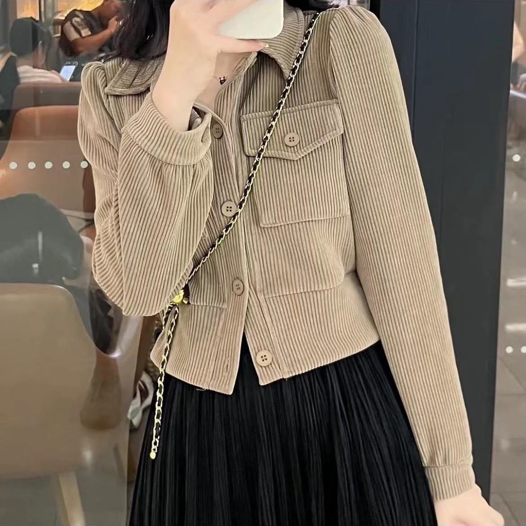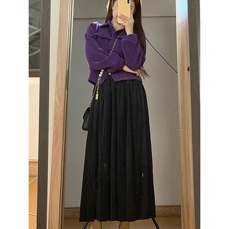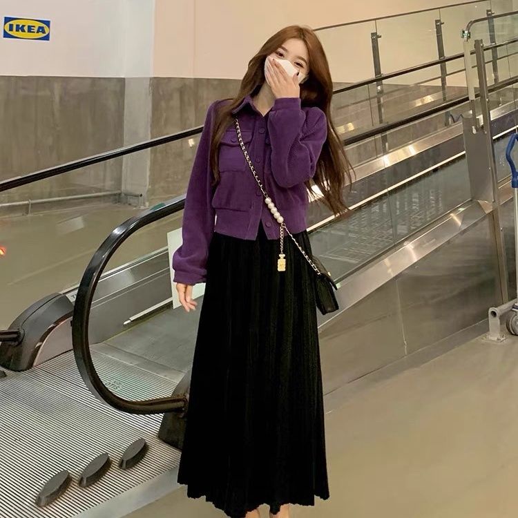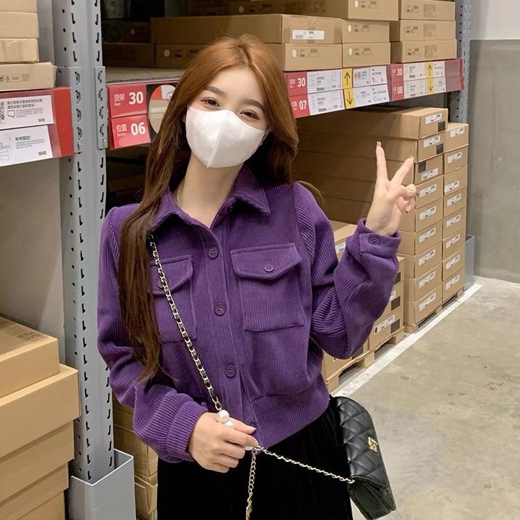 ใหม่ เสื้อแจ็กเก็ตแขนยาว ผ้าลูกฟูก สีม่วง แฟชั่นสไตล์เกาหลี สําหรับผู้หญิง