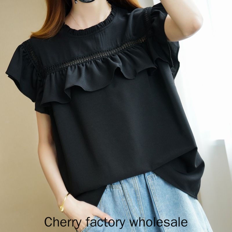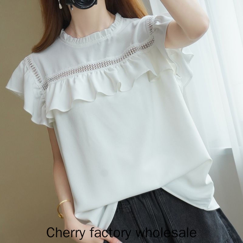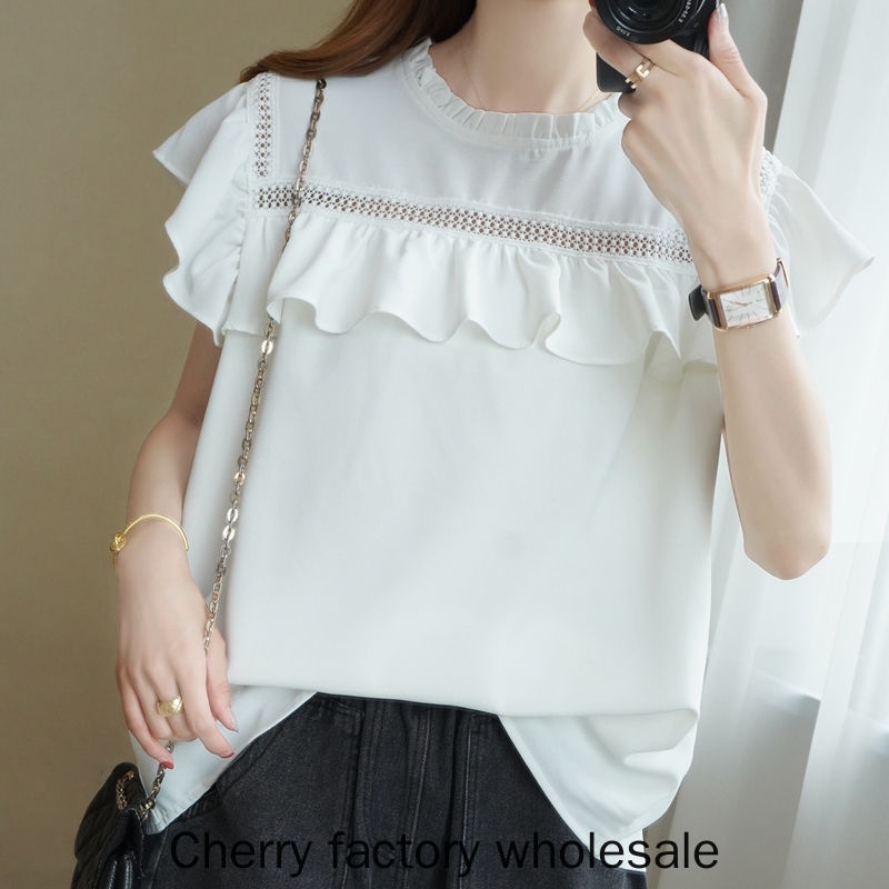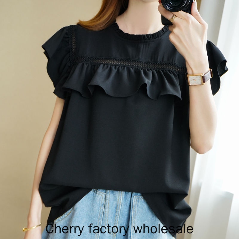 ใหม่ เสื้อชีฟอง แขนกุด แต่งระบาย ทรงหลวม ขนาดใหญ่ ลําลอง แฟชั่นสําหรับผู้หญิง