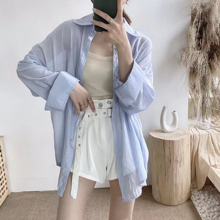 แฟชั่นเกาหลีพิมพ์โคมไฟแขนเสื้อลําลองหลวมคอมมูติ้งเสื้อ