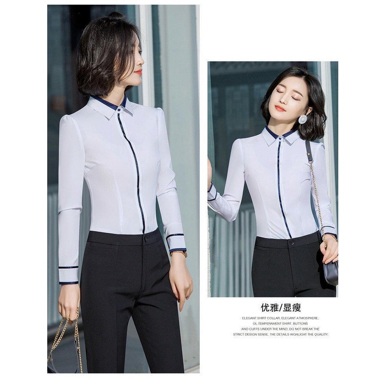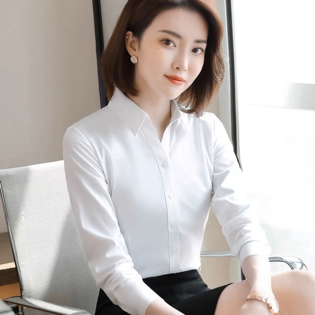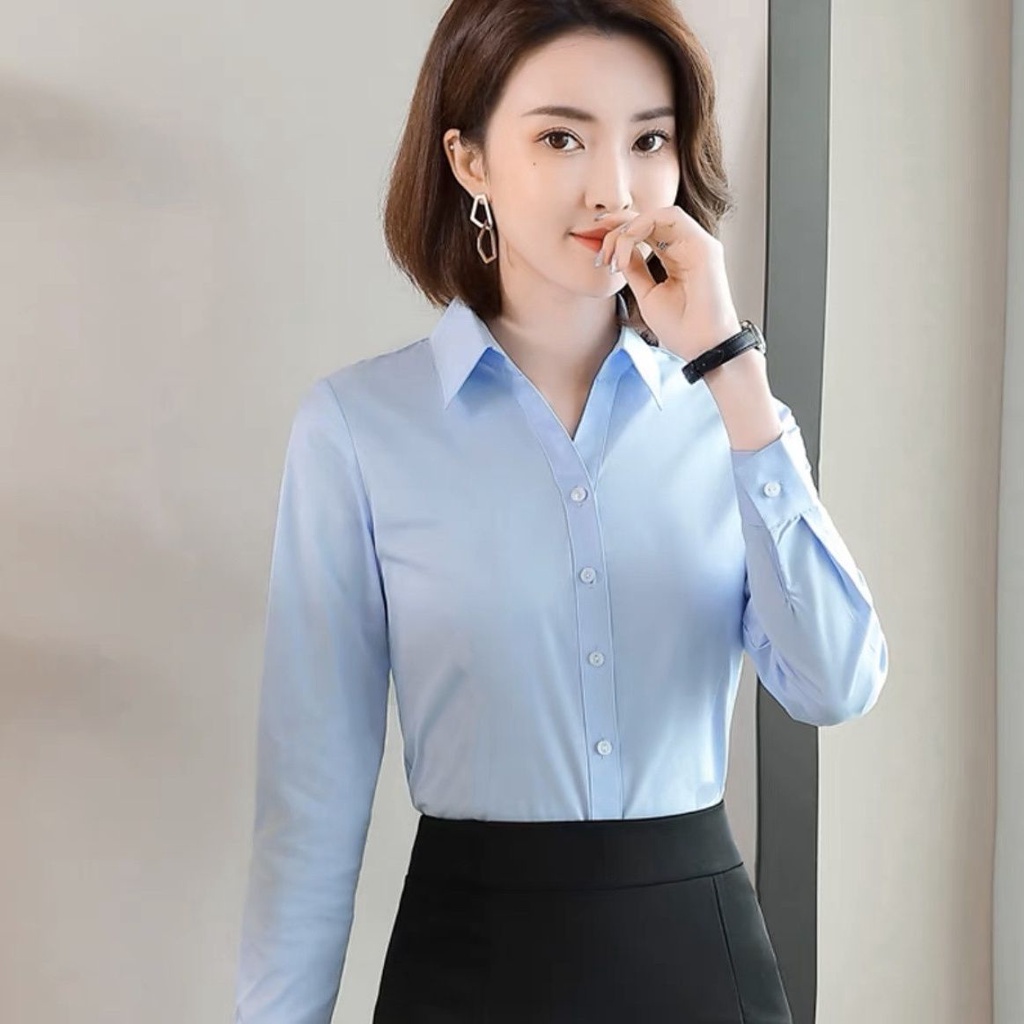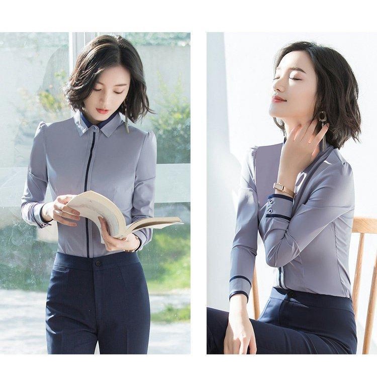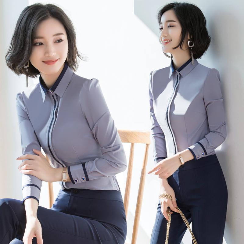 ใหม่ เสื้อเชิ้ตทํางาน แขนยาว สีเทา ทรงสลิมฟิต แฟชั่นหรูหรา สําหรับผู้หญิง