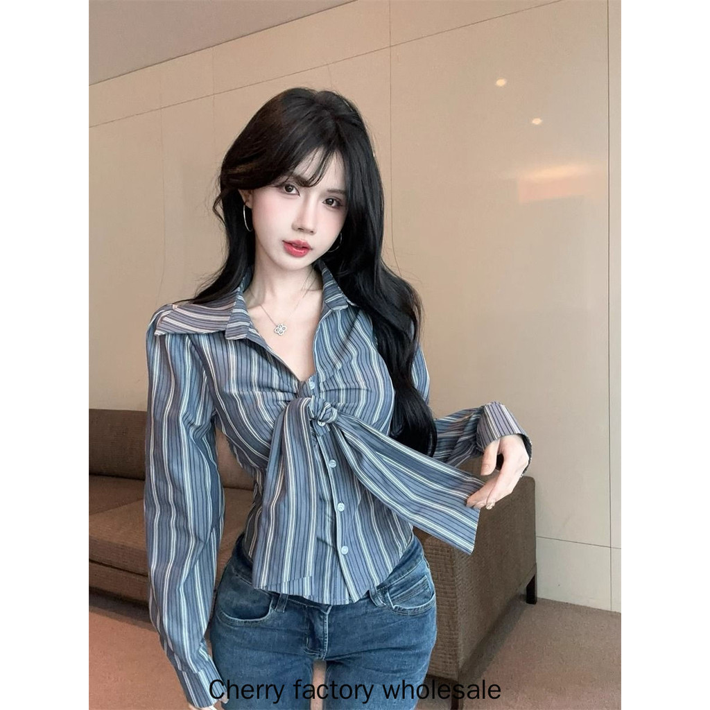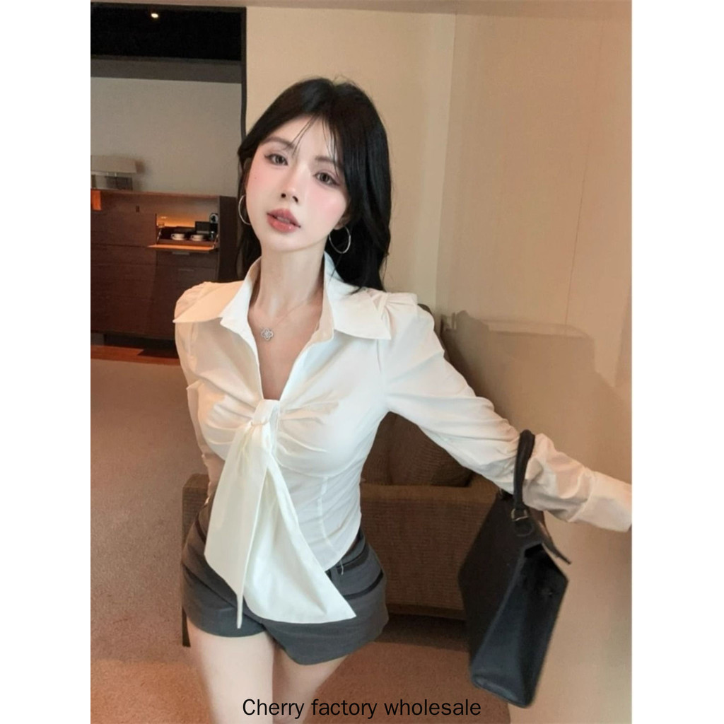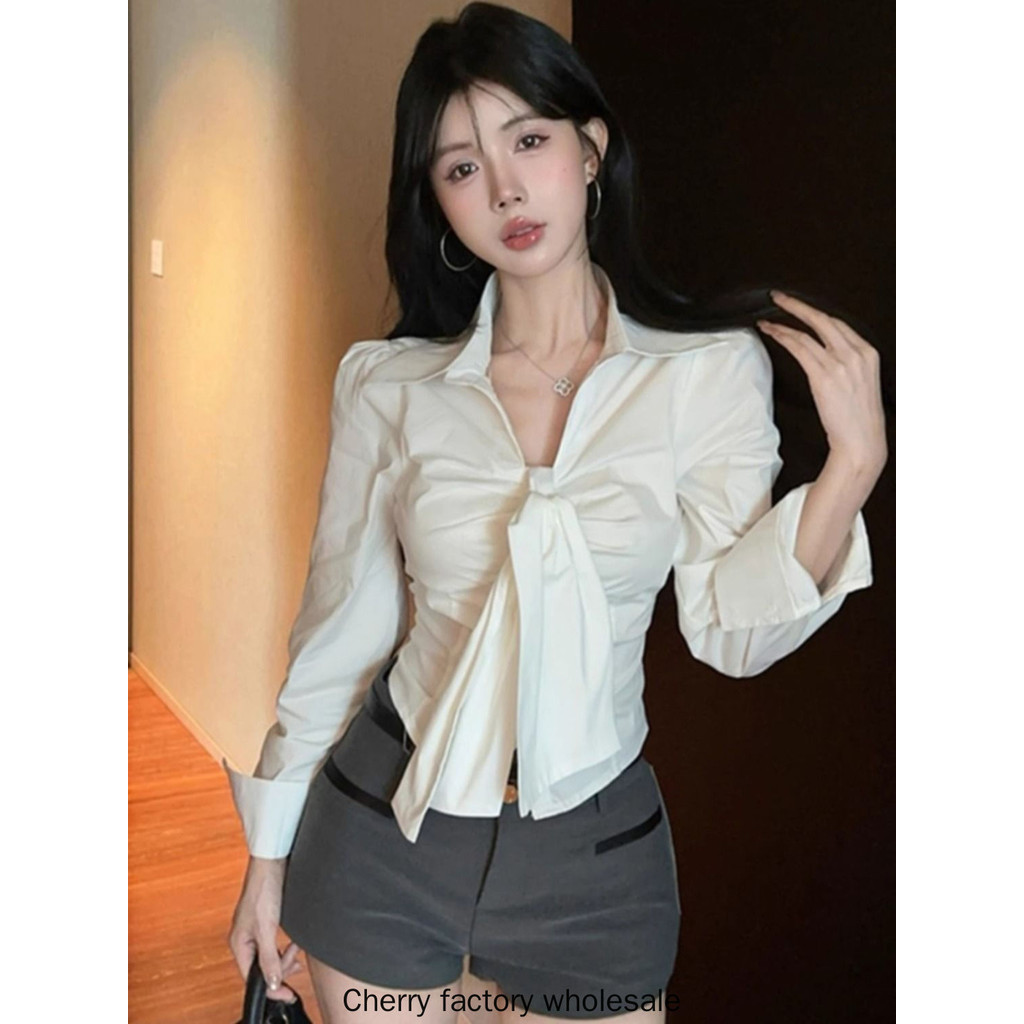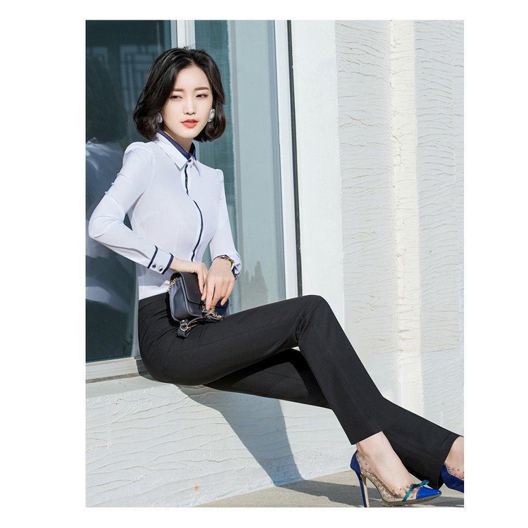 ใหม่ เสื้อเชิ้ตทํางาน แขนยาว สีเทา ทรงสลิมฟิต แฟชั่นหรูหรา สําหรับผู้หญิง