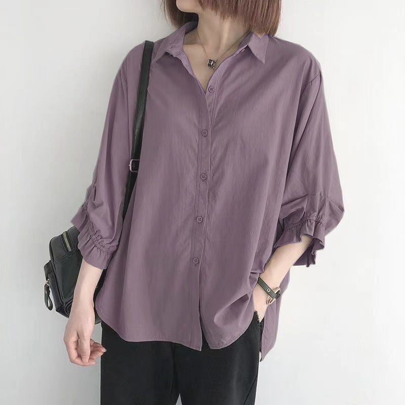 ใหม่ เสื้อเชิ้ต แขนทรงโคมไฟ ทรงหลวม พิมพ์ลาย สไตล์เกาหลี พลัสไซซ์ แฟชั่นสําหรับผู้หญิง