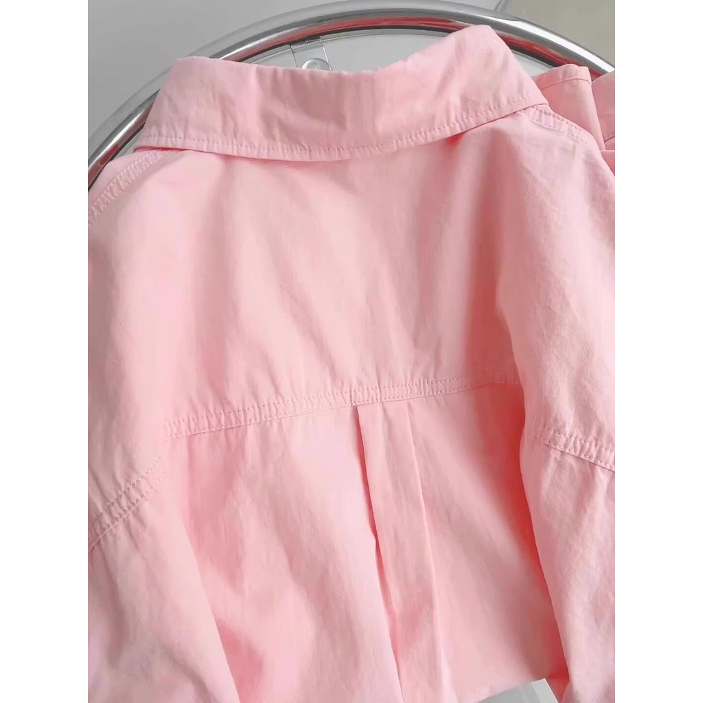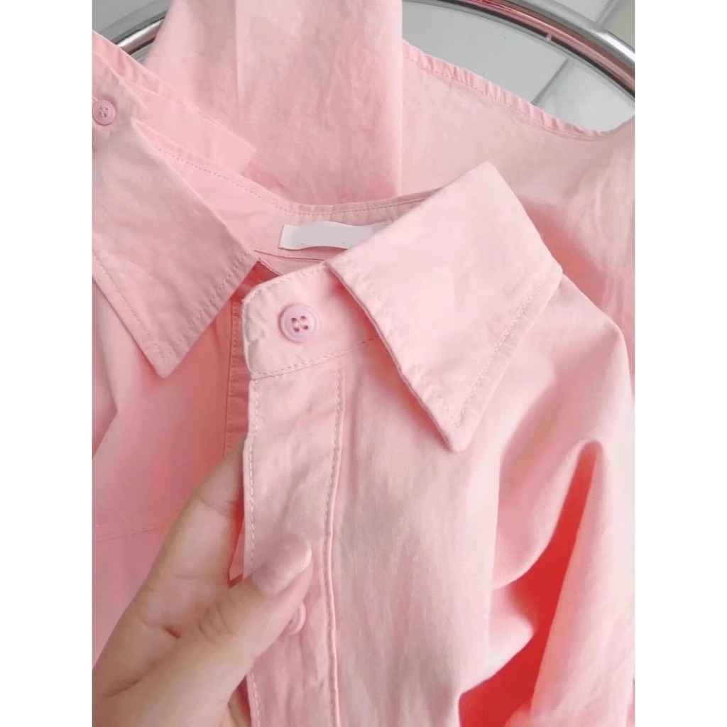 แจ็คเก็ตแขนยาวผ้าฝ้ายแท้ สีชมพูหวาน ดีไซน์เรียบหรู ใส่แล้วเพรียวขึ้น แมทช์ได้หลากหลายโอกาส