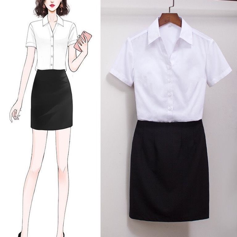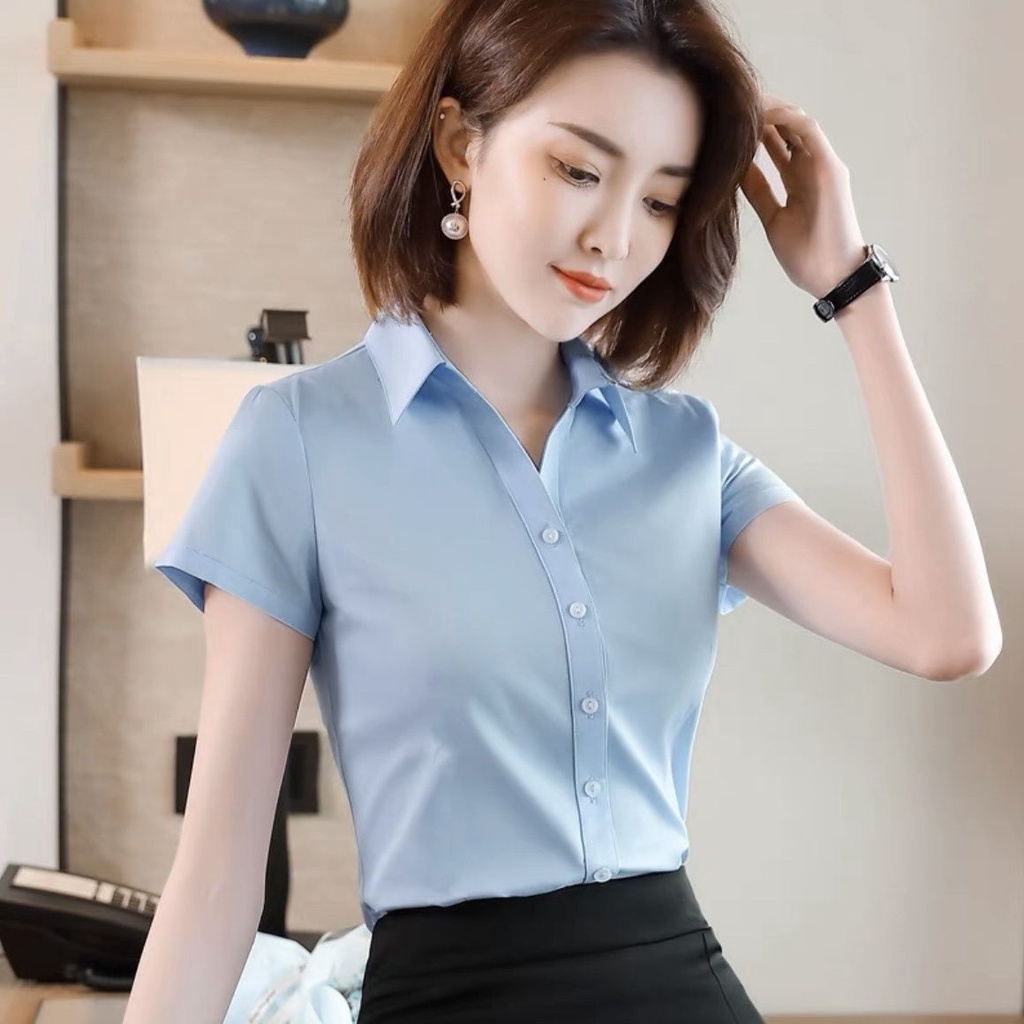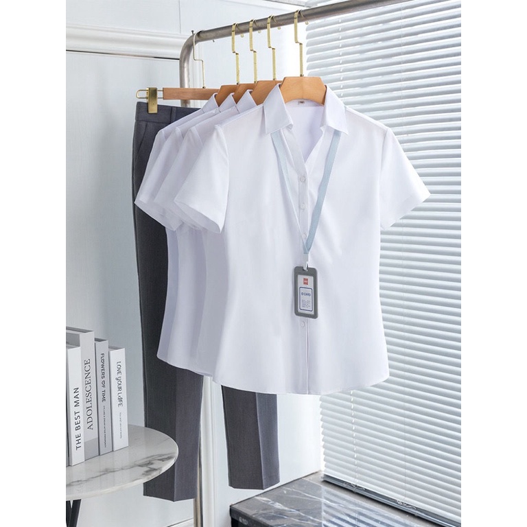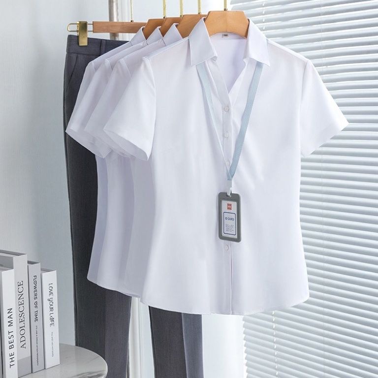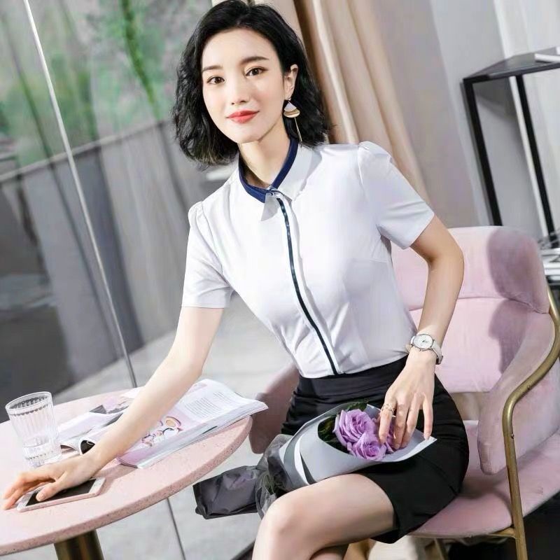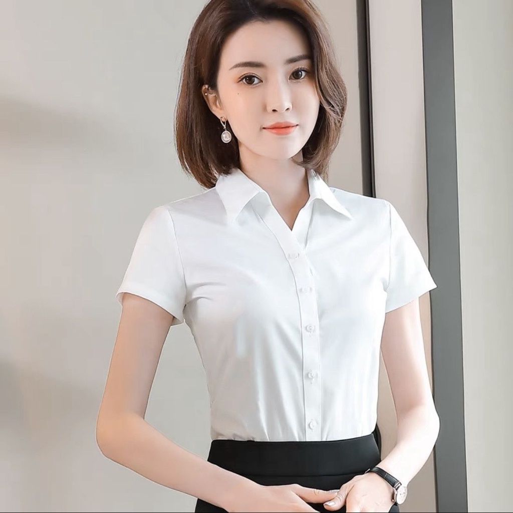 ใหม่ เสื้อเชิ้ต คอวี แขนสั้น สีขาว เป็นทางการ สไตล์ธุรกิจ แฟชั่นสําหรับผู้หญิง