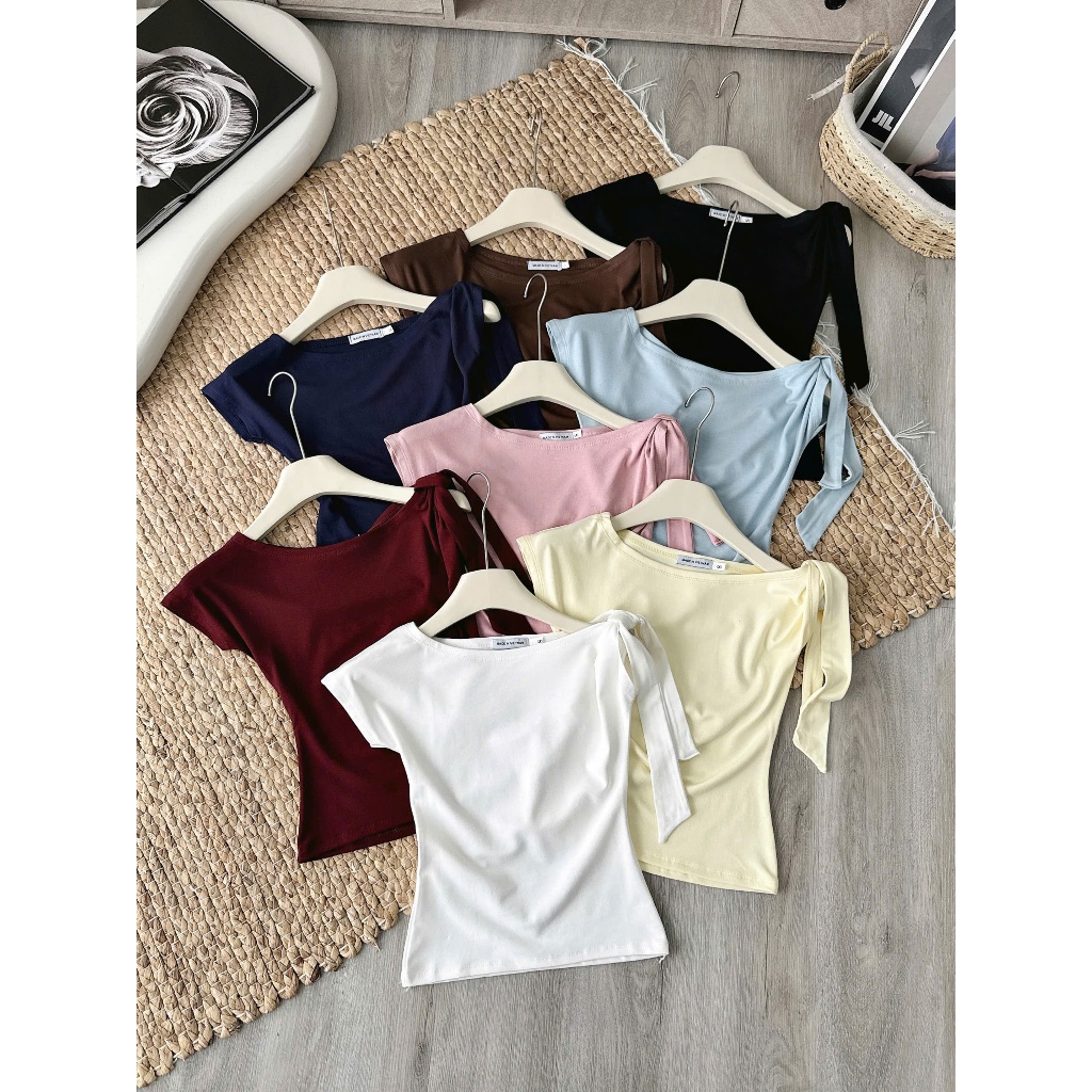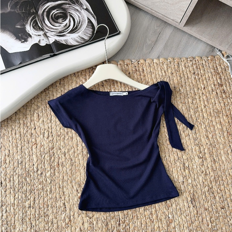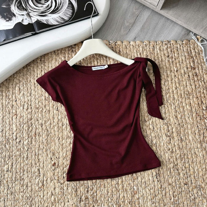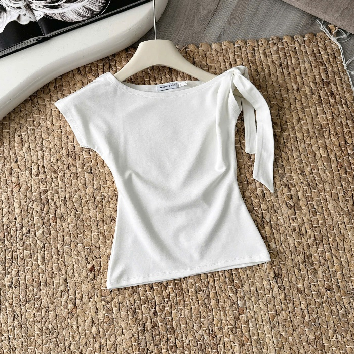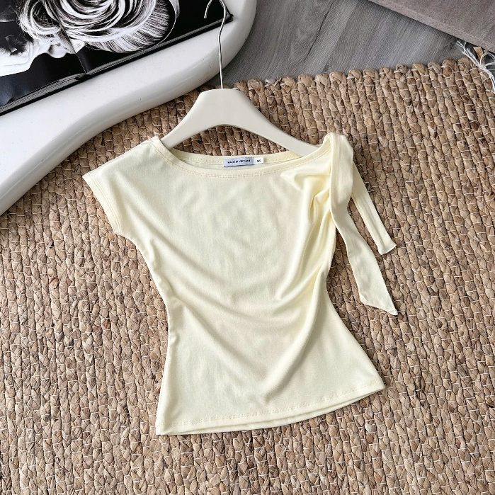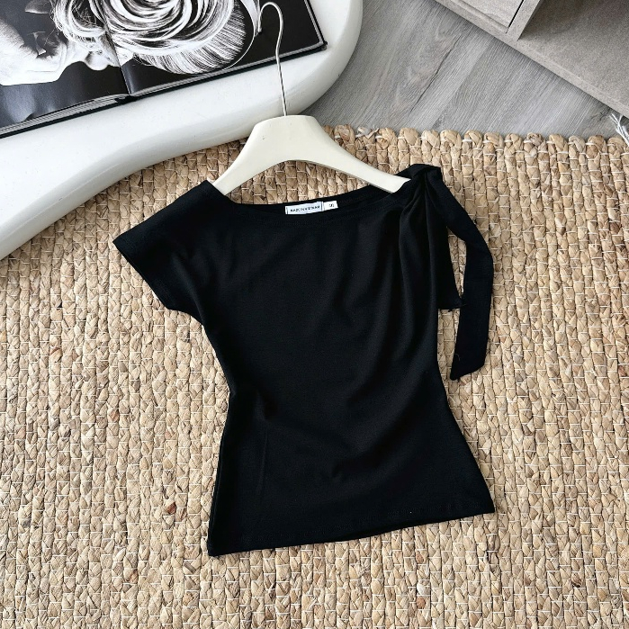 เสื้อไหล่เดียวแขนสั้น,เสื้อเปิดไหล่สําหรับผู้หญิง,เสื้อยืดแขนสั้นเข้ารูปสําหรับผู้หญิงฤดูร้อนสไตล์ใหม่ชายหาดหลากสี