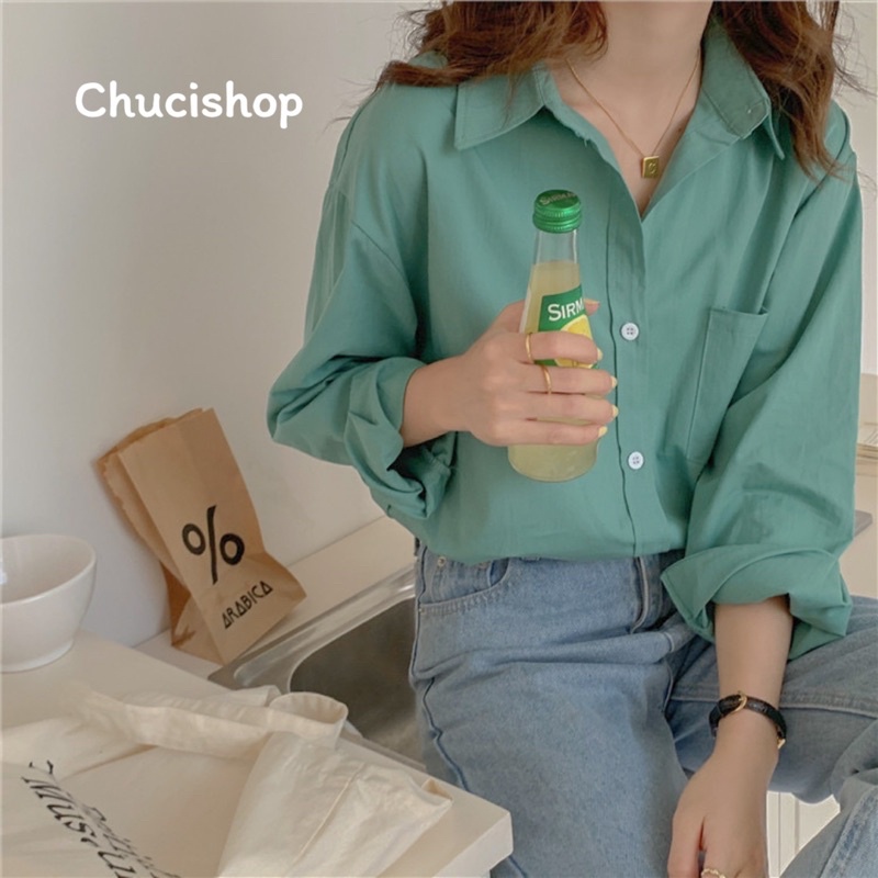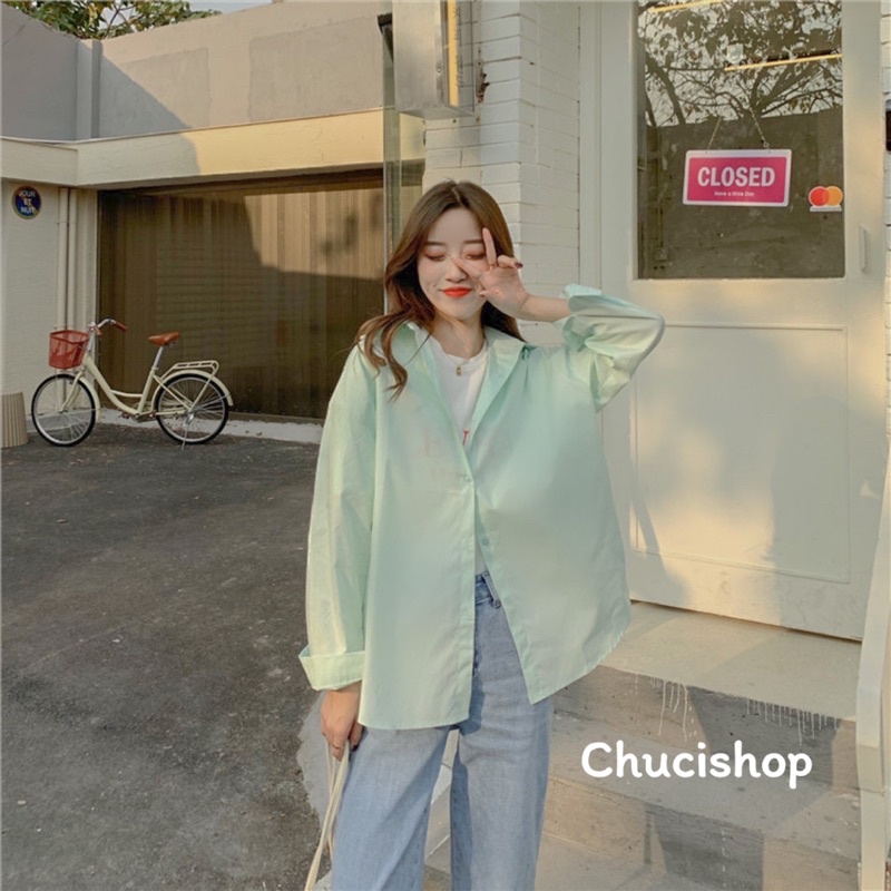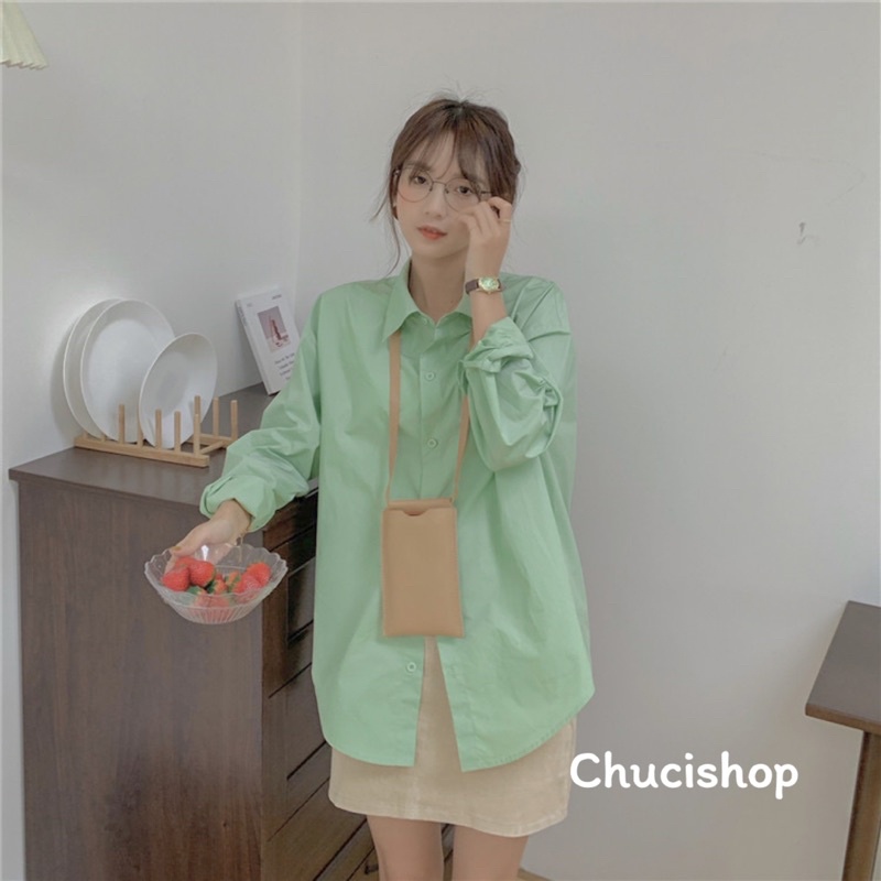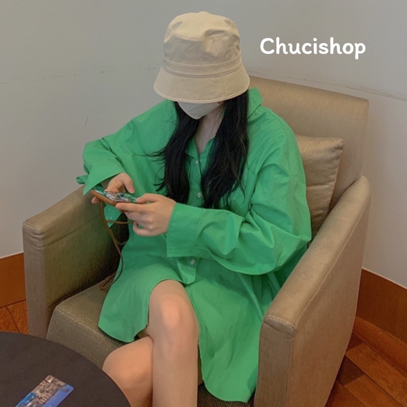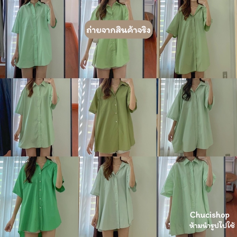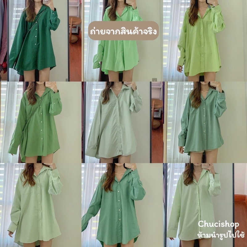 🔥ปังสุด🔥เสื้อเชิ้ตโอเวอร์ไซส์ สีเขียว ใส่ทำงาน อก40-65นิ้ว มีปลายทาง ✨