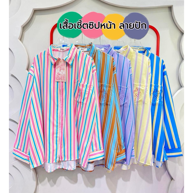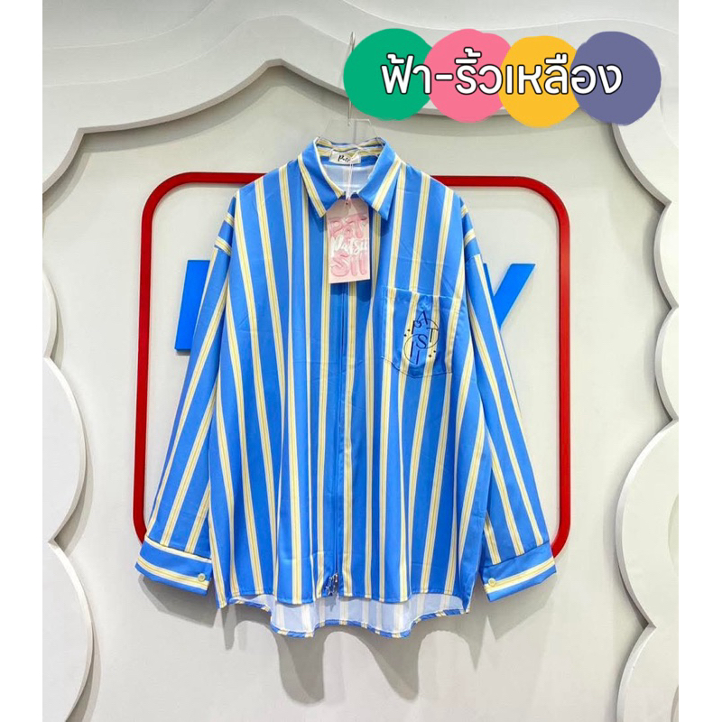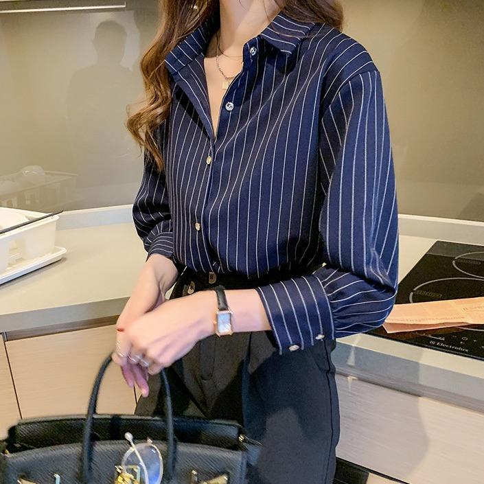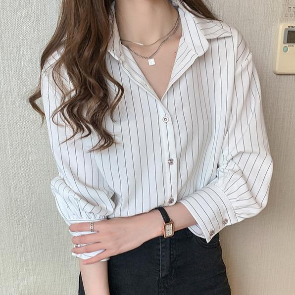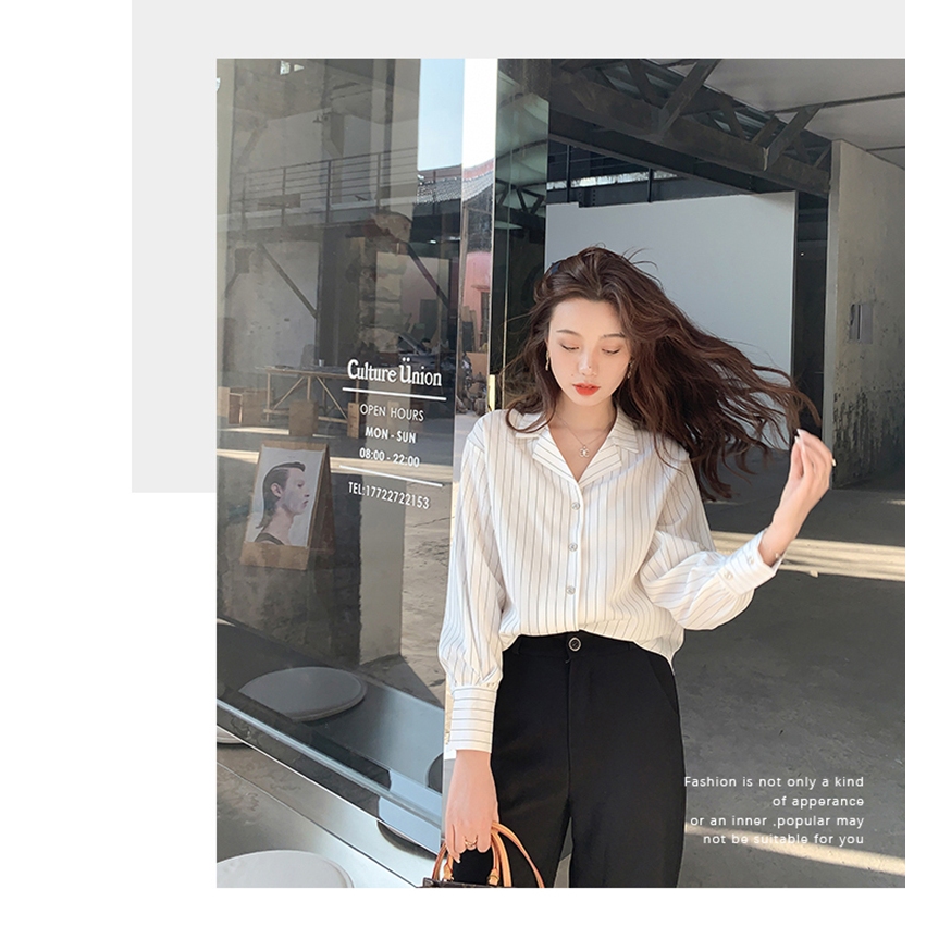 💖Dahong 💖เสื้อใส่ทำงานผู้หญิง เสื้อเชิ้ตแขนยาว ลายทาง ลายทาง ทรงหลวม แมทซ์ง่ายใส่ได้ทุกวัน