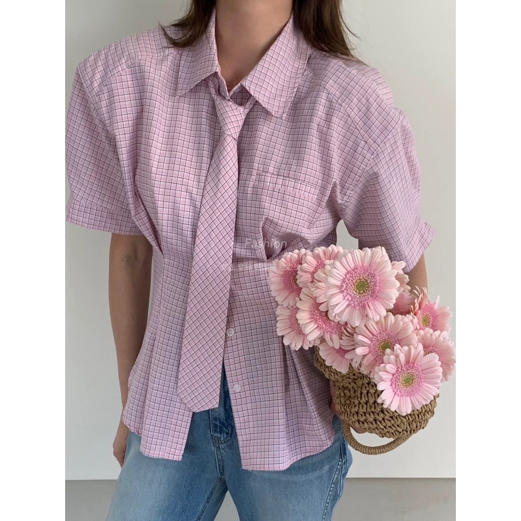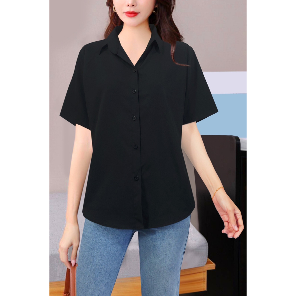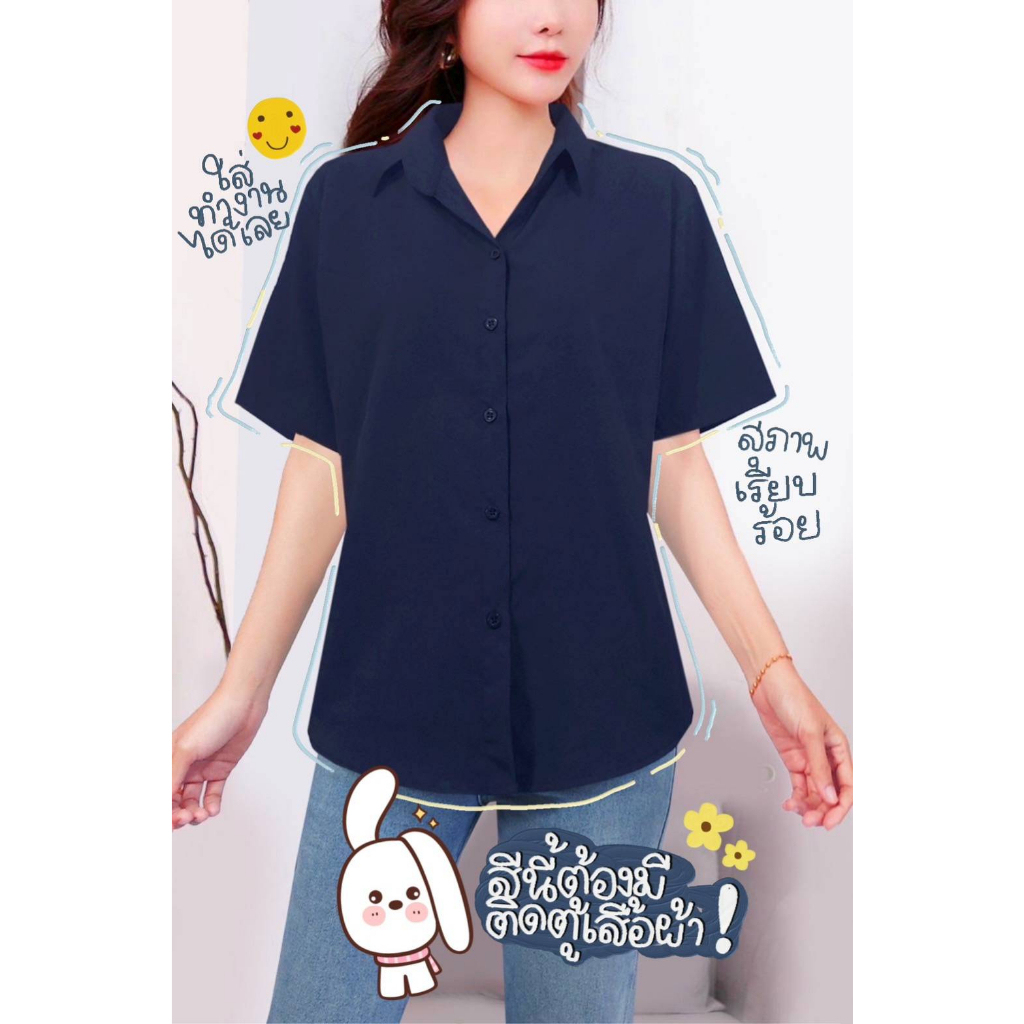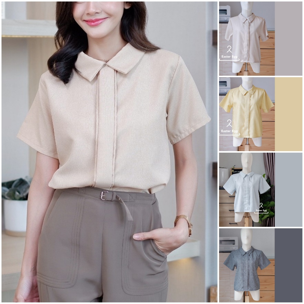 💥SALE ล้างสต๊อก💥 E05 เสื้อทำงานผู้หญิง แขนสั้น คอปก แฟชั่น แต่งสาบหน้า ชุดทำงาน ผู้หญิง Easter Egg