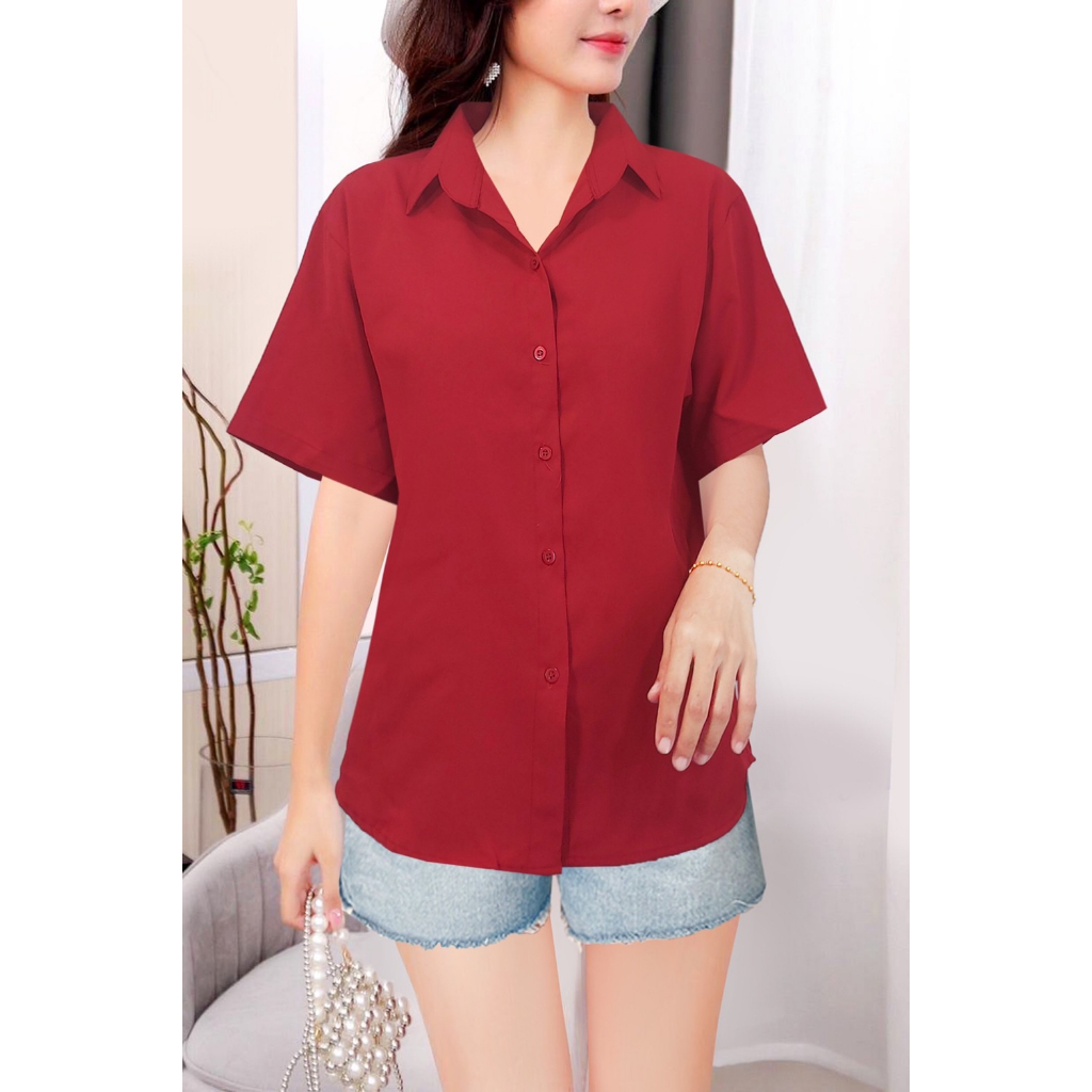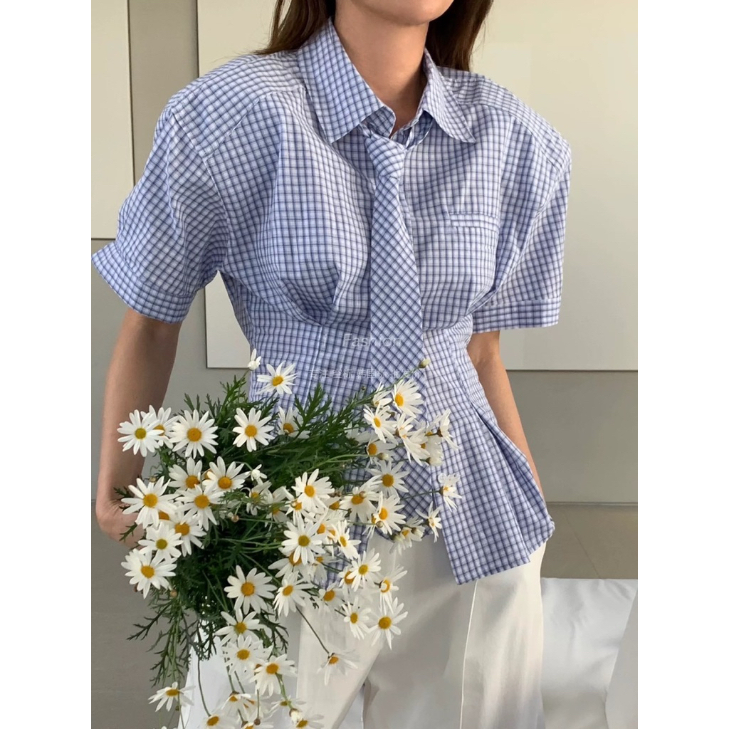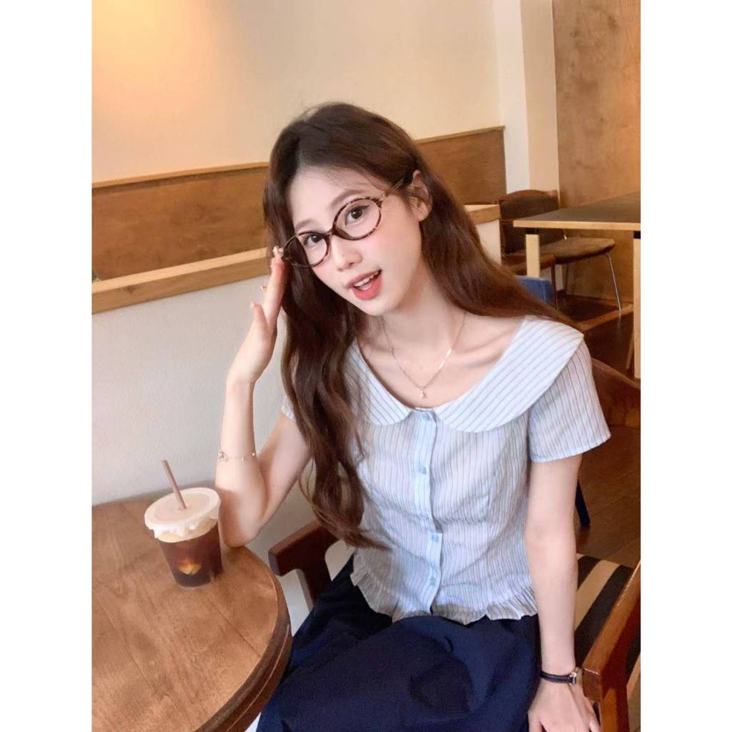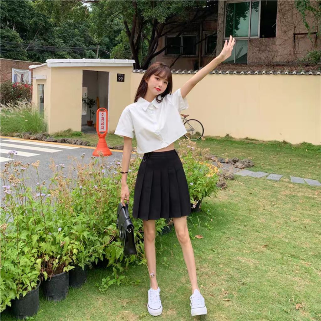 💥เสื้อเชิ้ตครอปผู้หญิงสีขาว แขนสั้น แฟชั่นเกาหลี เนื้อผ้าใส่สบายรีดง่ายยับยาก KT05