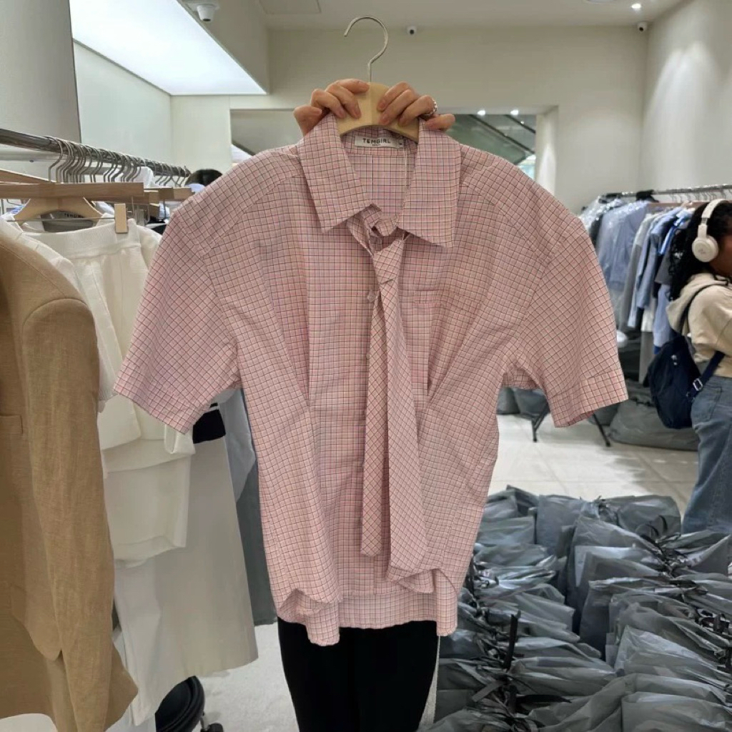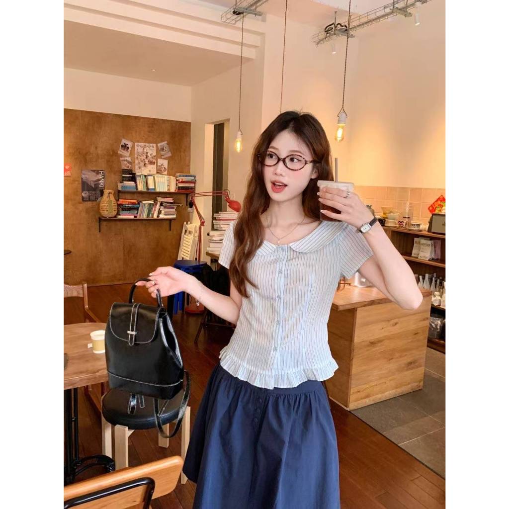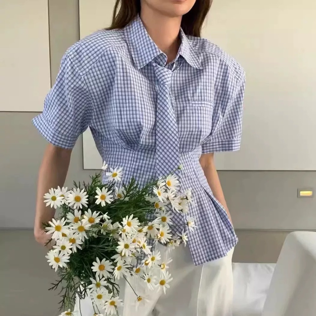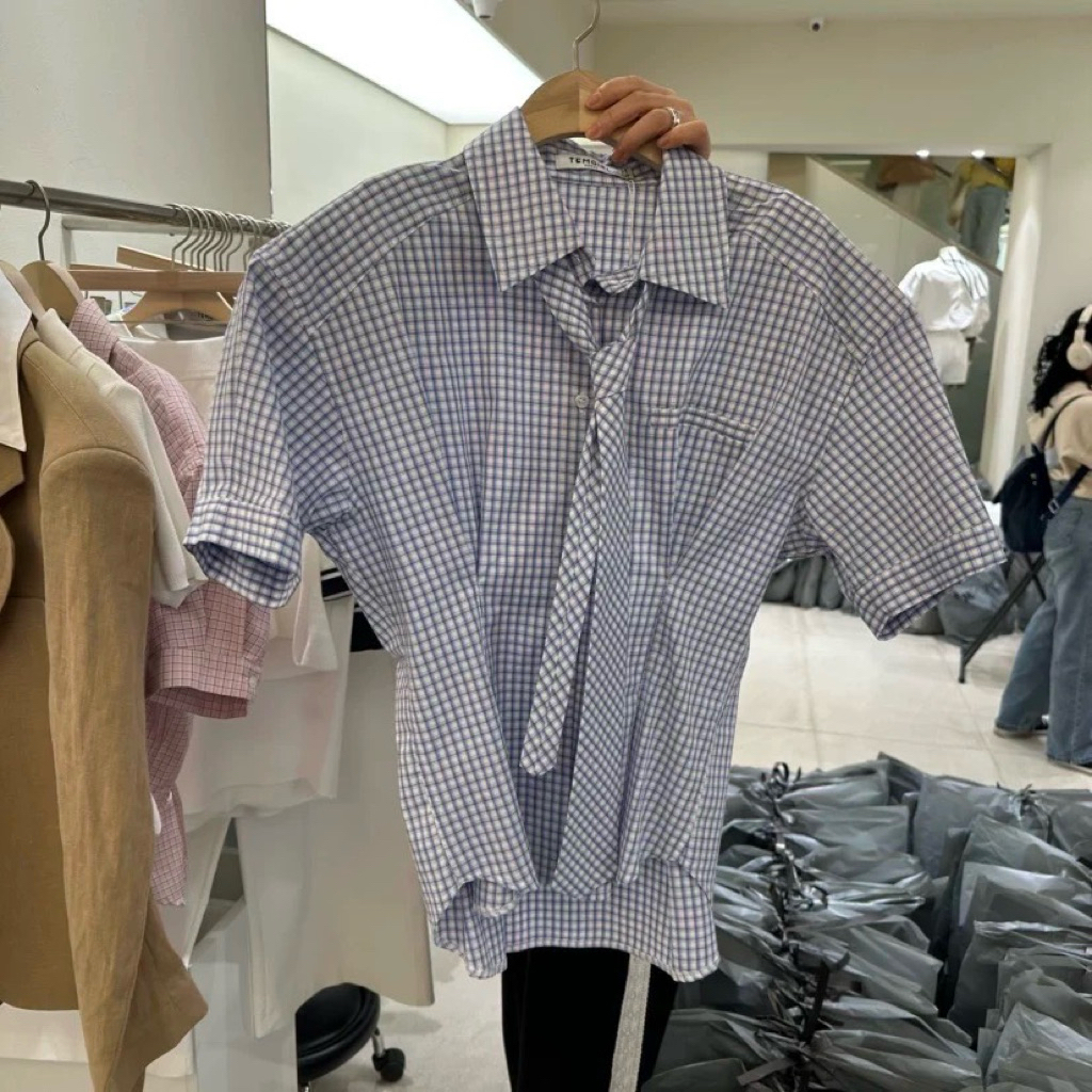 💥เสื้อเชิ้ตครอปผู้หญิงสีขาว แขนสั้น แฟชั่นเกาหลี เนื้อผ้าใส่สบายรีดง่ายยับยาก KT05