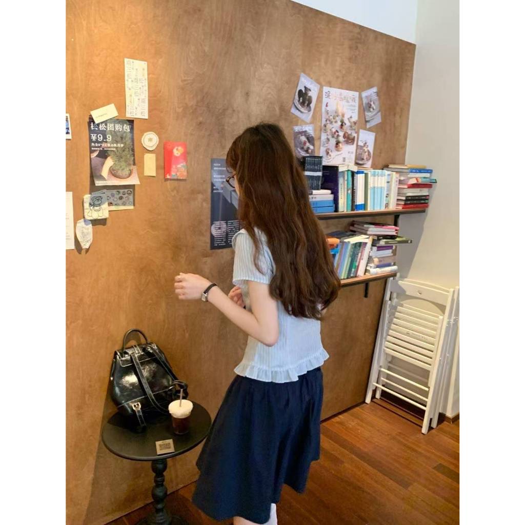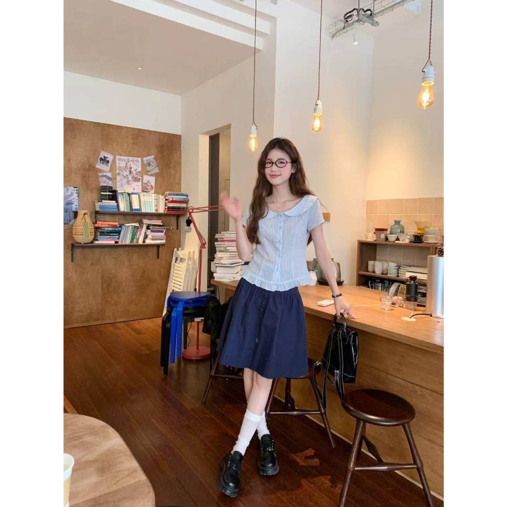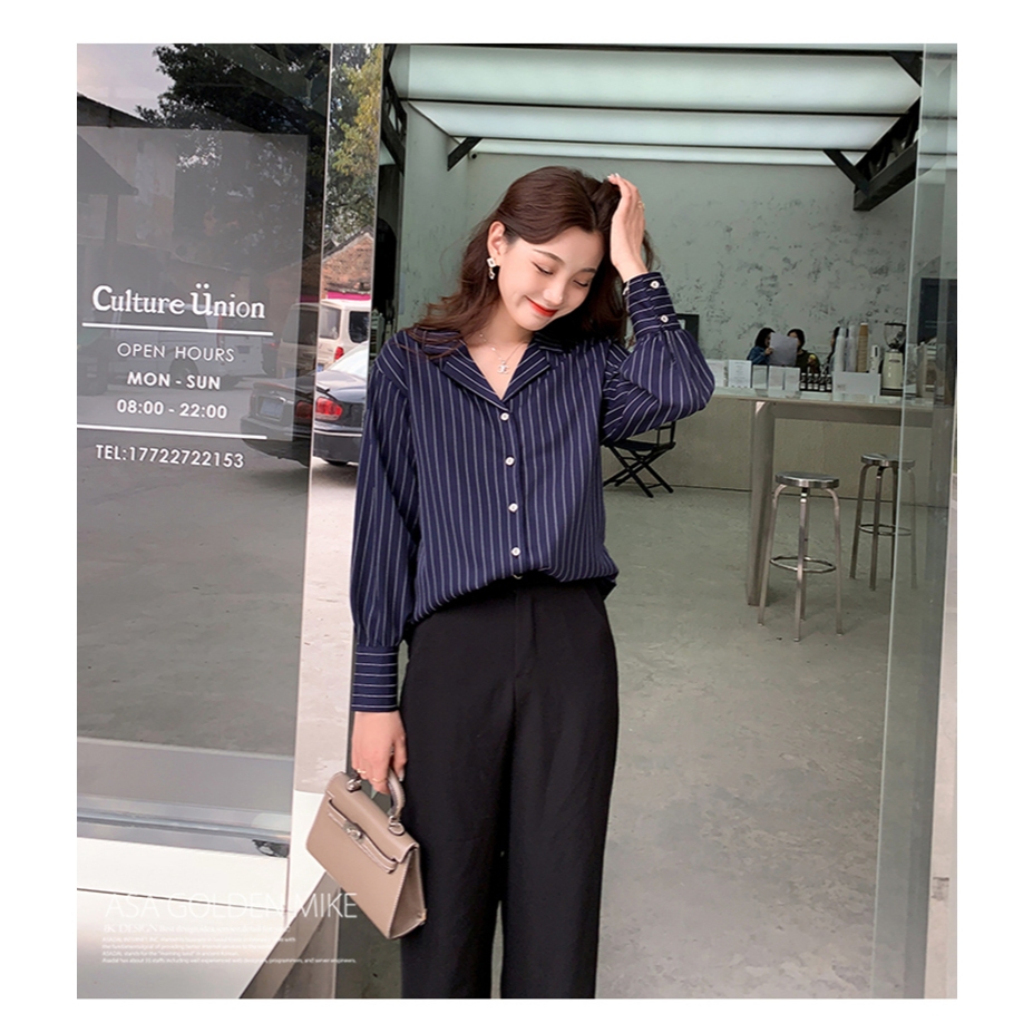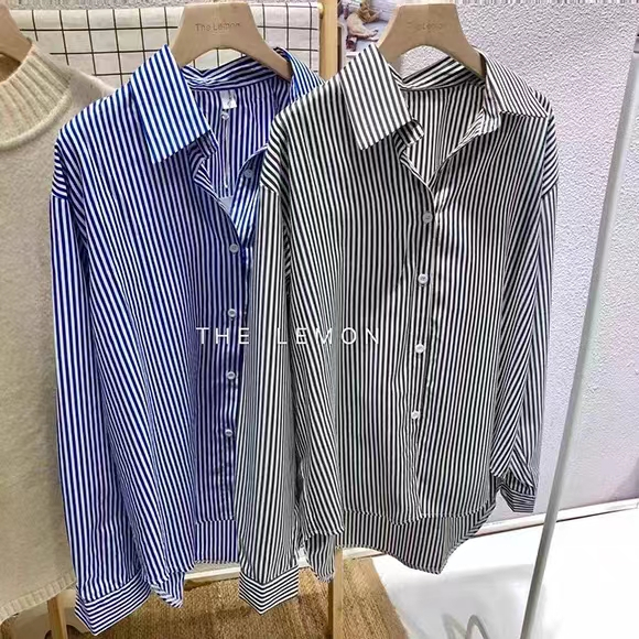 💖Dahong 💖เสื้อแฟชั่น เสื้อเชิ้ตสีน้ําเงิน ลายทาง สำหรับผู้หญิง ทรงหลวม แฟชั่นฤดูใบไม้ผลิ และฤดูใบไม้ร่วง