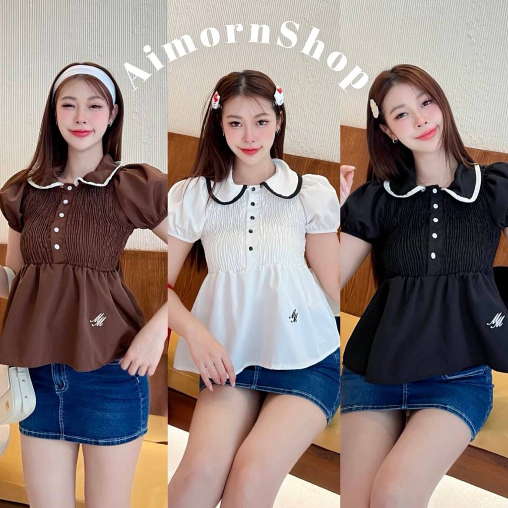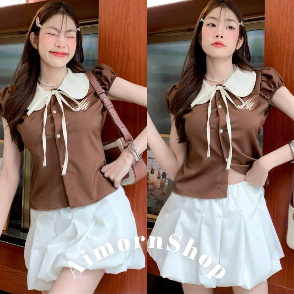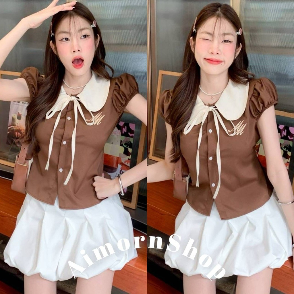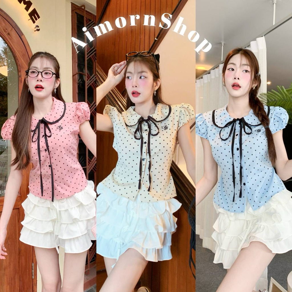 🔥aimorn_shop🔥🌈เสื้อแขนตุ๊กตา ทรงคอบัวผูกโบว์ กระดุมใช้ได้จริง มีเชือกผูกหลัง ดีเทลสวยหรูมาก