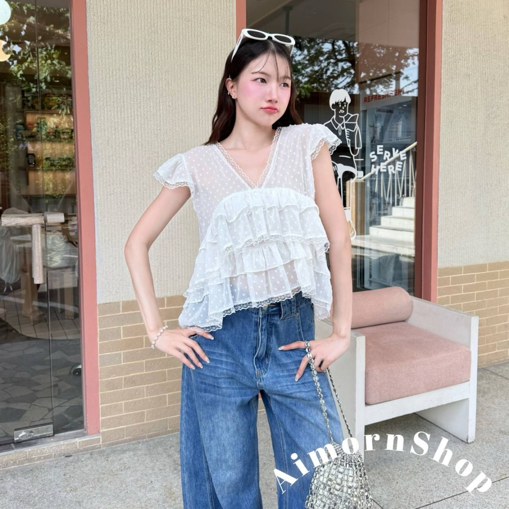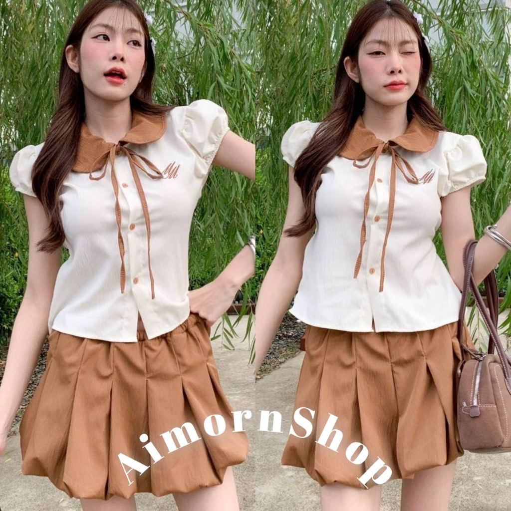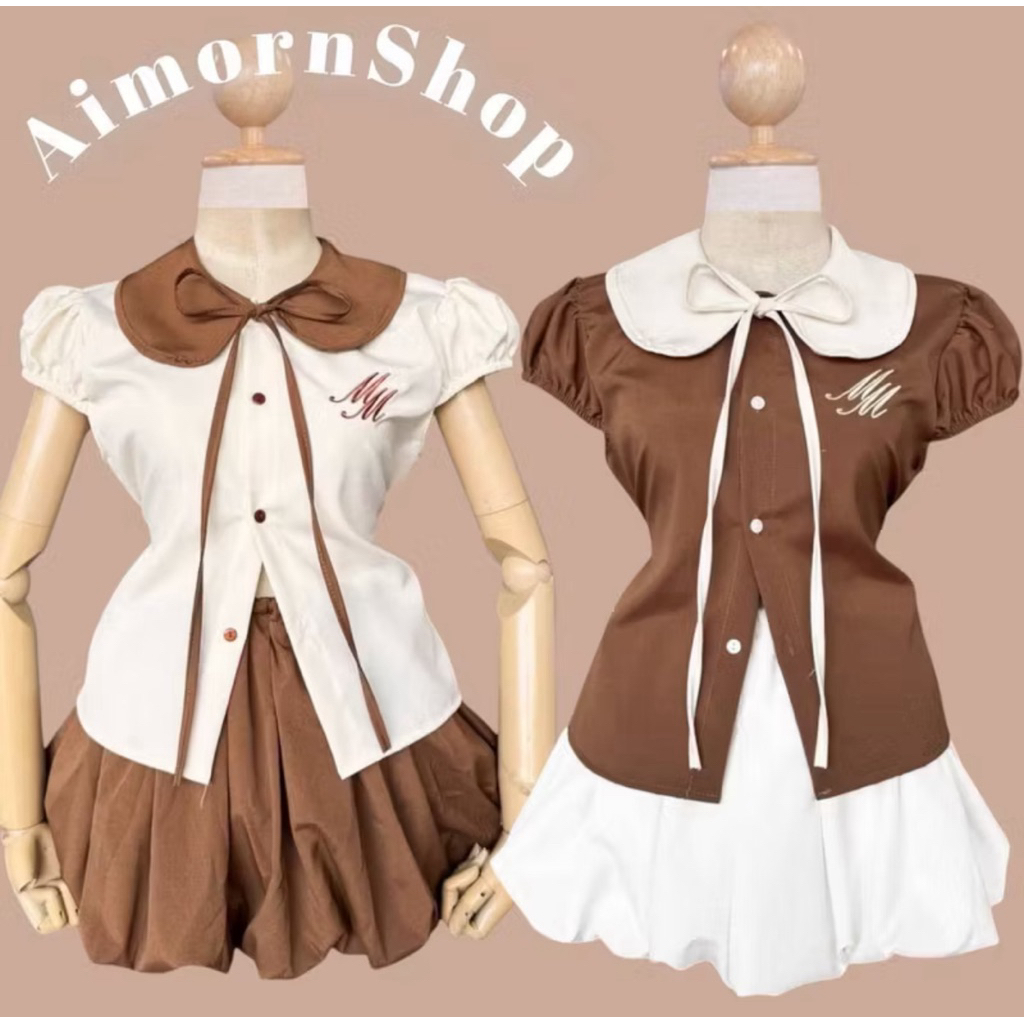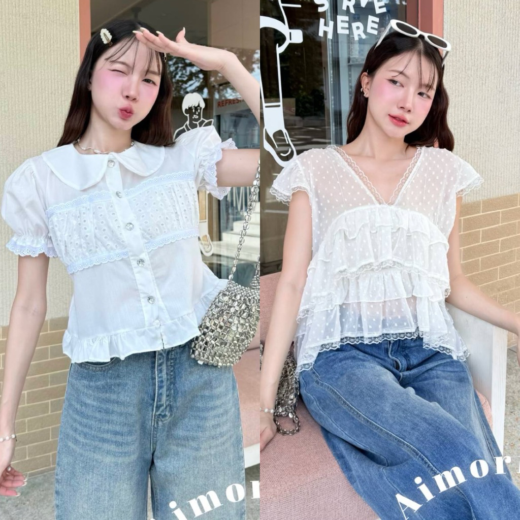 🔥aimorn_shop🔥🌈เสื้อแขนตุ๊กตา ทรงคอบัวผูกโบว์ กระดุมใช้ได้จริง มีเชือกผูกหลัง ดีเทลสวยหรูมาก