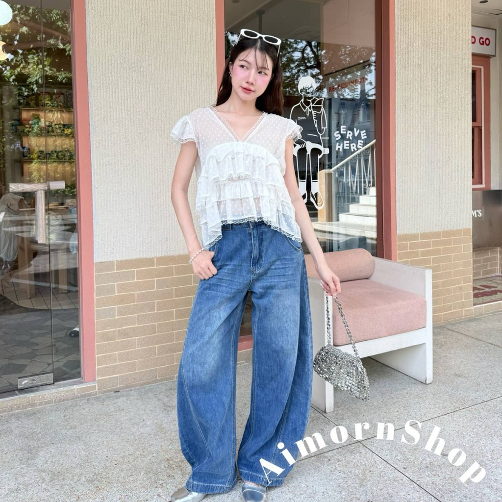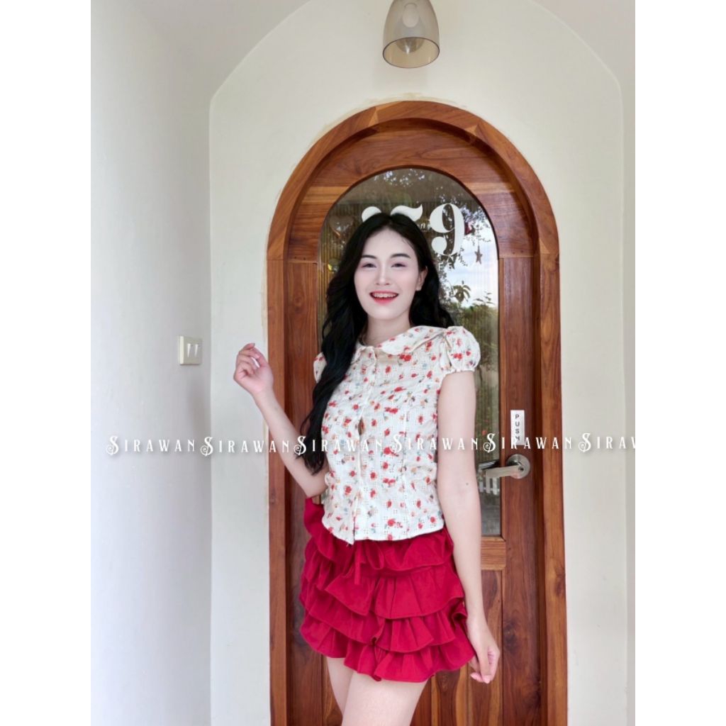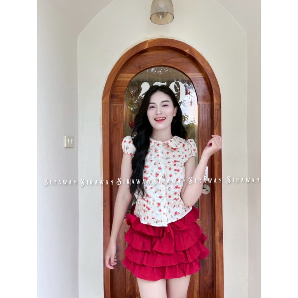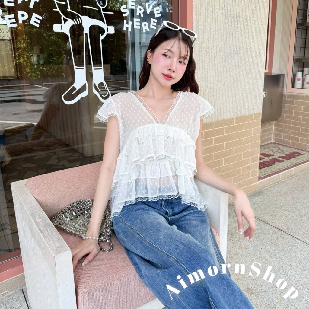 🔥aimorn_shop🔥🌈เสื้อแขนตุ๊กตา ทรงคอบัวผูกโบว์ กระดุมใช้ได้จริง มีเชือกผูกหลัง ดีเทลสวยหรูมาก