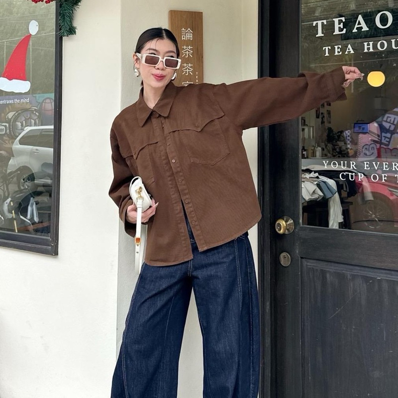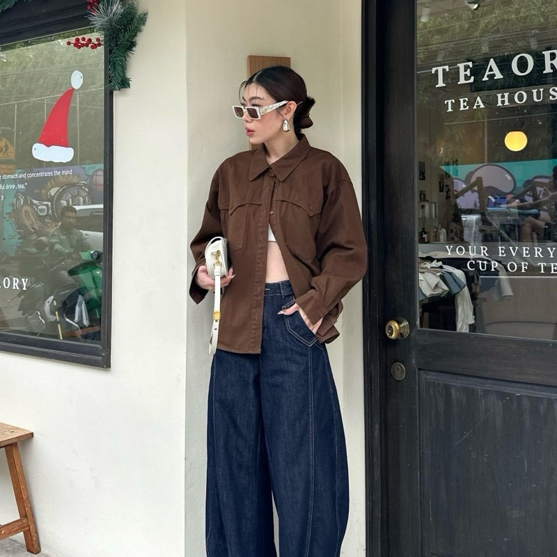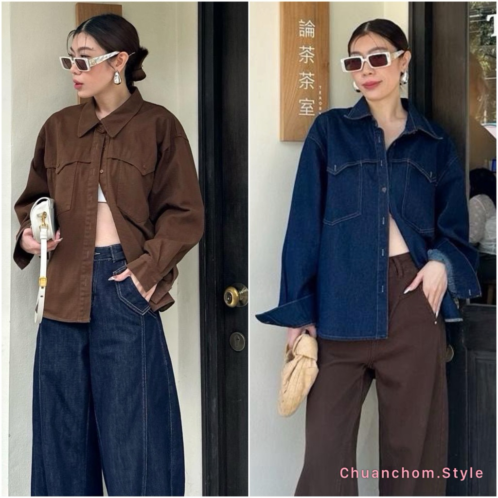 🔖X2 #05 เสื้อเชิ้ตทรงโอเวอร์ไซส์ ดีเทลกระเป๋าโค้งที่อก ทรงสโลปโค้งหน้าหลัง