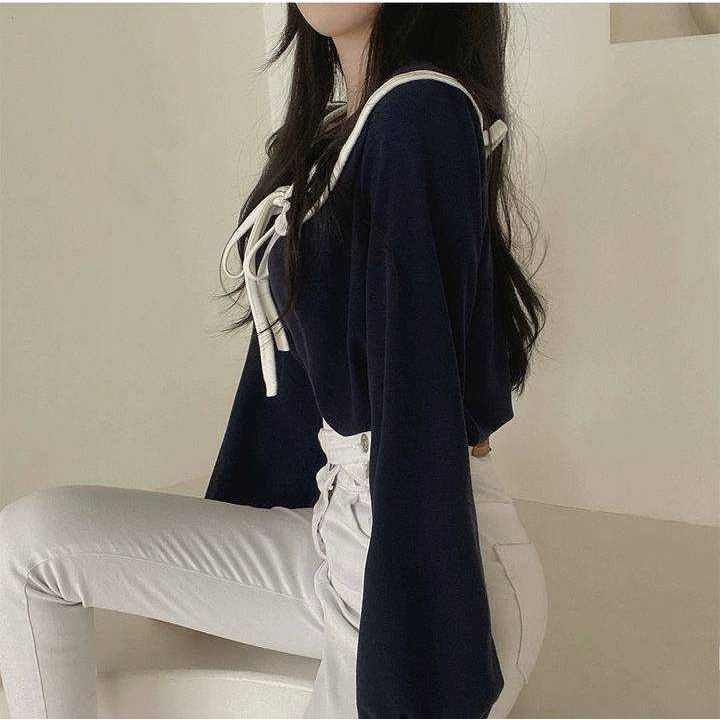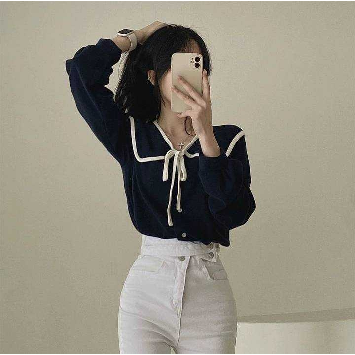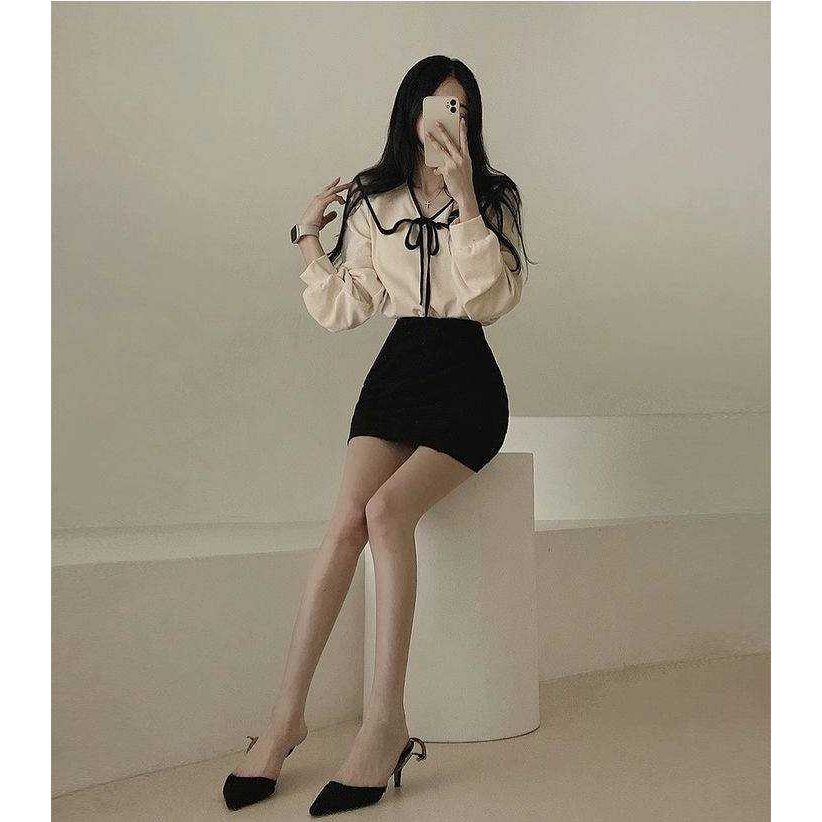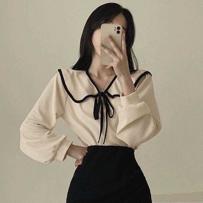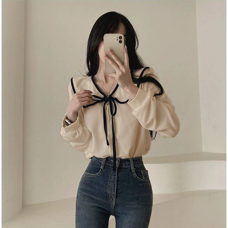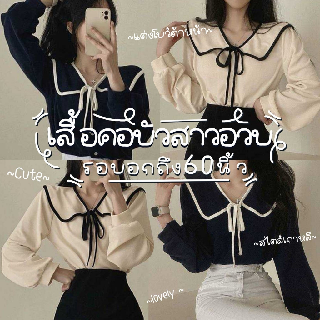 🖤C16 🖤 เสื้อแขนยาว คอปกใหญ่ ทรงสวยทรงดี ด้านหน้ามีเชือกผูกเป็นโบว์น่ารักๆ สาวผอม-สาวอวบ ใส่ได้จ้า รอบบอกได้ถึง60++ 🤍