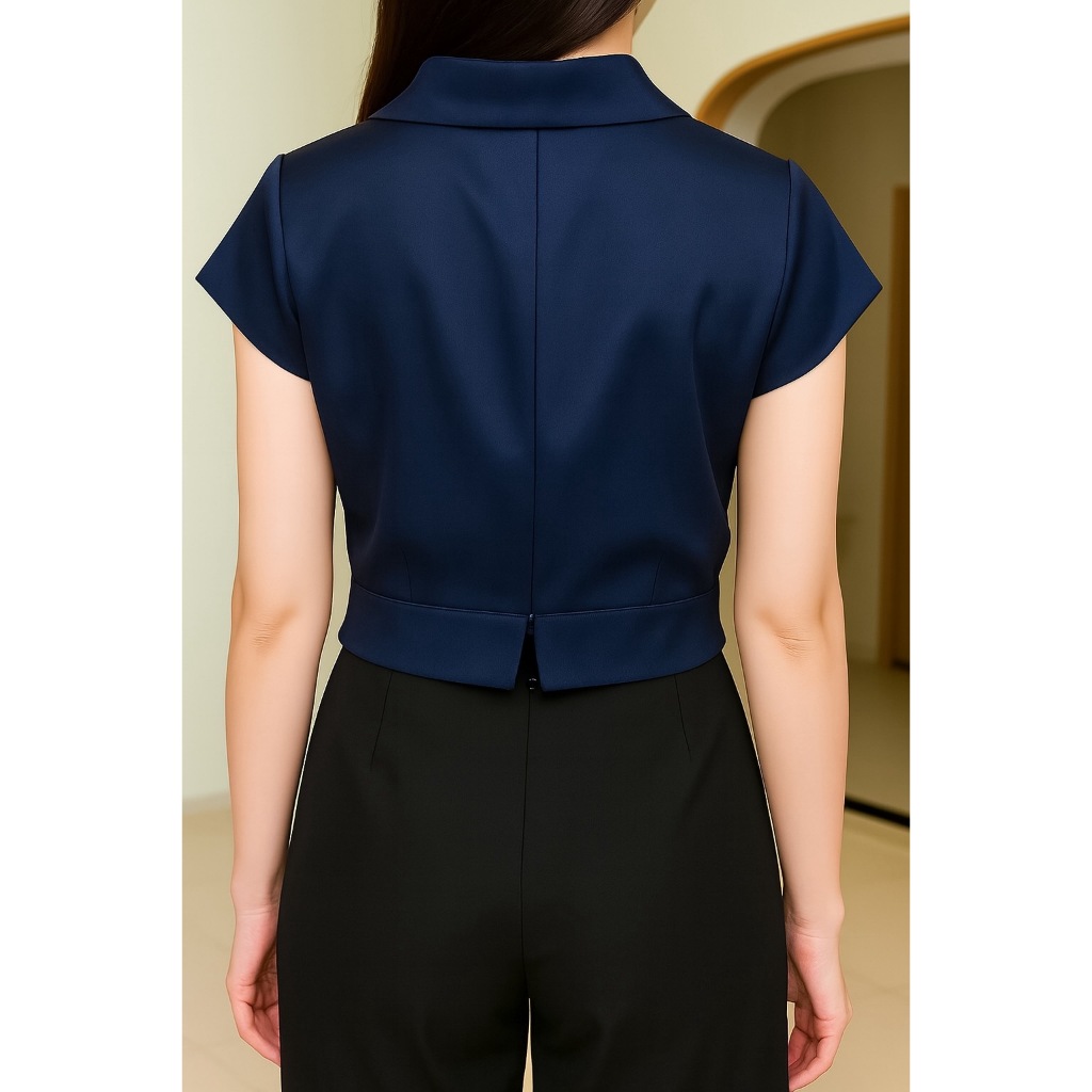 🔥aimorn_shop🔥เสื้อครอปแขนตุ๊กตา คอบัว แต่งดกระดุมน่ารักๆ ผูกโบว์ด้านหลังเก๋ๆ ทรงสวยมาก