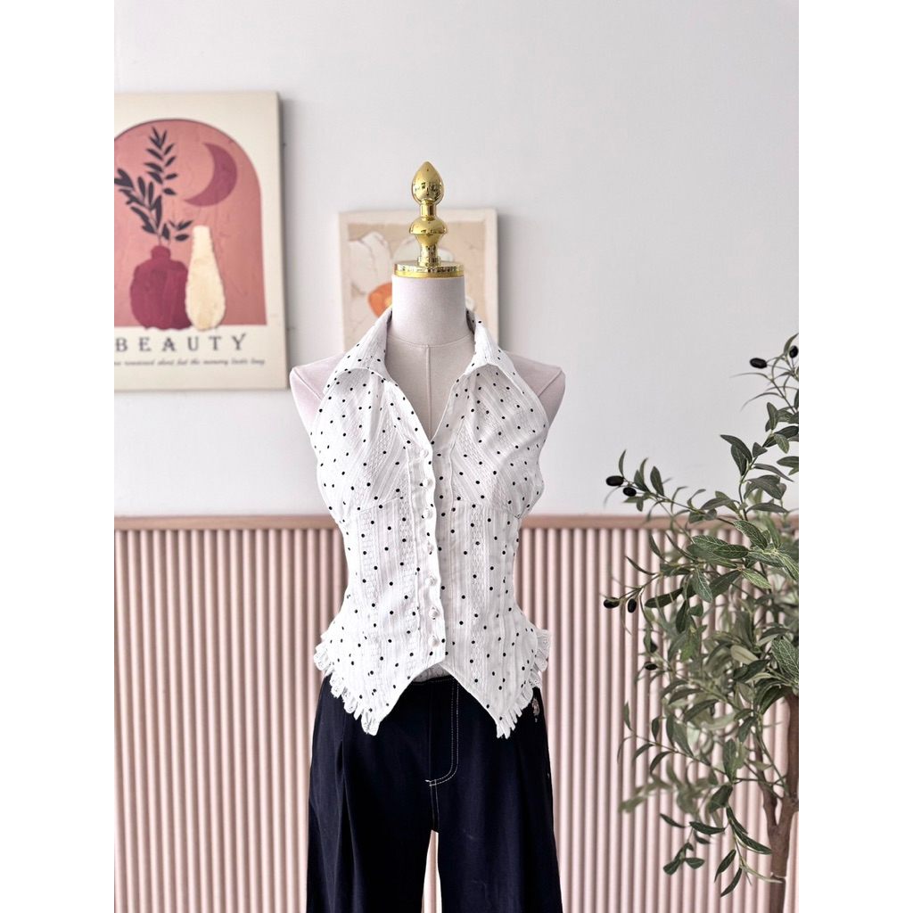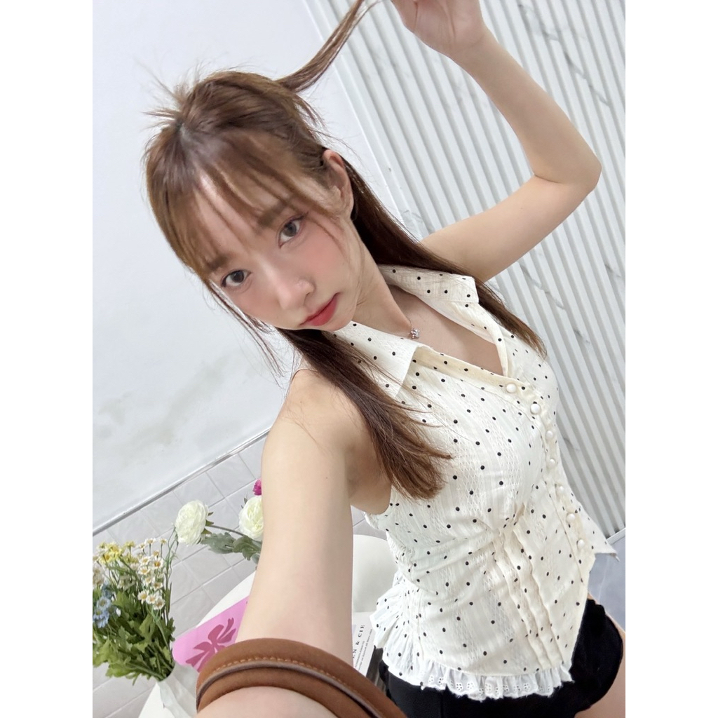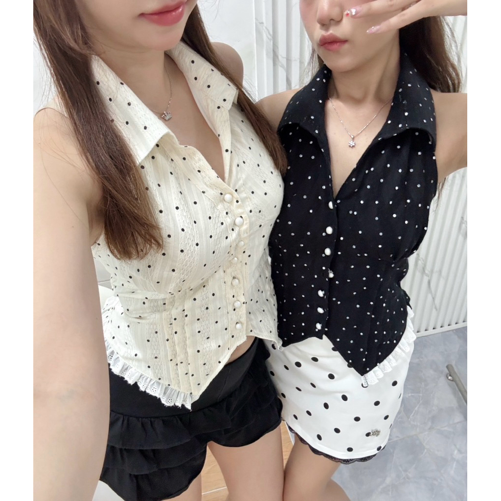 💗New💗เสื้อคอปกลานยจุดเว้าหลัง แต่งกระดุมชายแหลม ดีเทลตีเกร็ตหน้า คลิฟลุคมากๆ สีสวยทุกสี