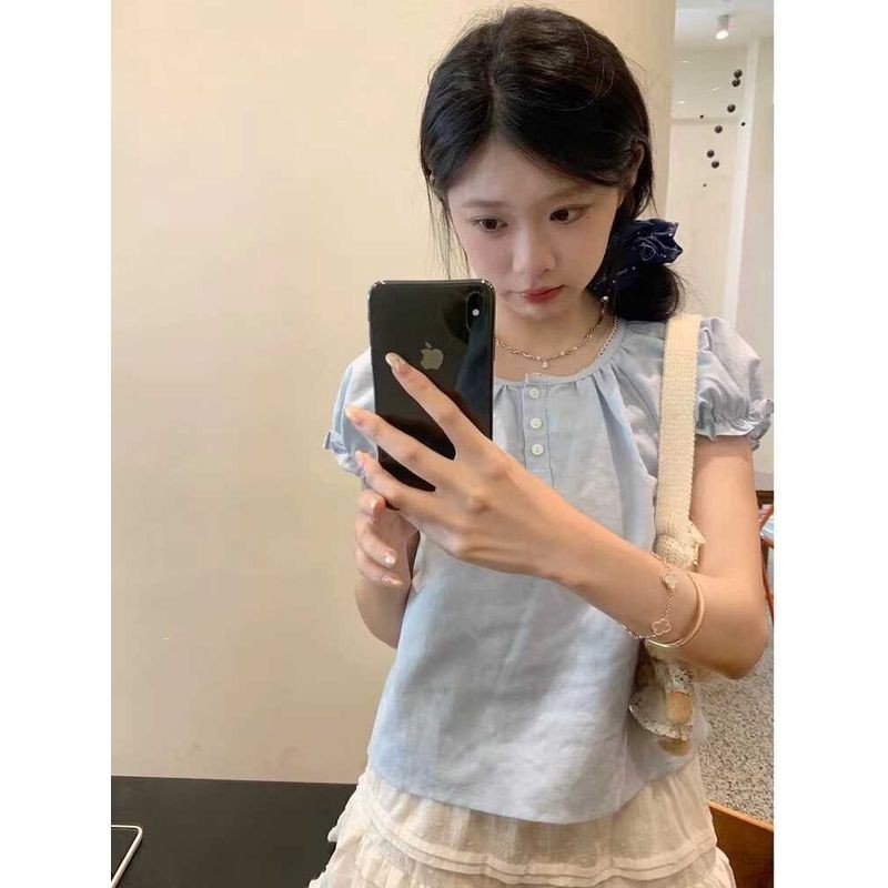 🧡LINNA🧡จัดส่งภายใน 24 ชั่วโมง🚀เวอร์ชั่นเกาหลี เย็บปักถักร้อย แขนสั้น เสื้อเชิ้ต ความเรียบง่าย สันทนาการ