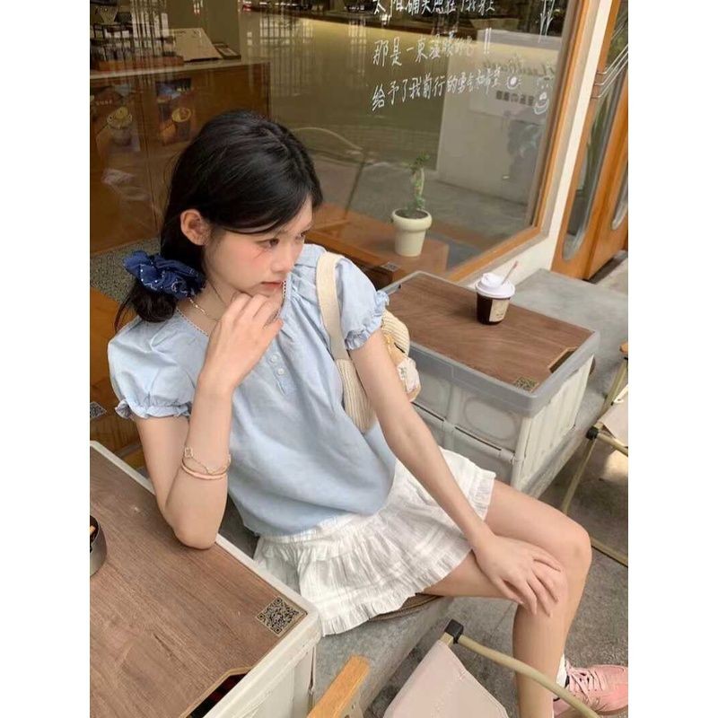 🧡LINNA🧡สีทึบ แขนสั้น เสื้อเชิ้ต ความเรียบง่าย แฟชั่น หวาน สไตล์ใหม่