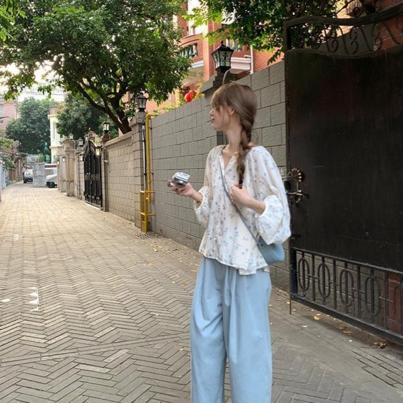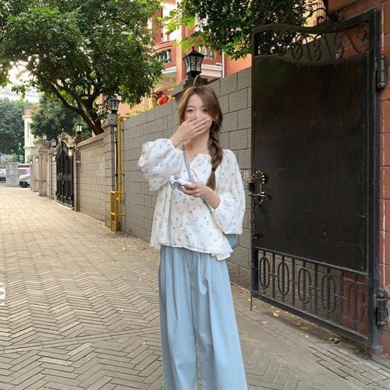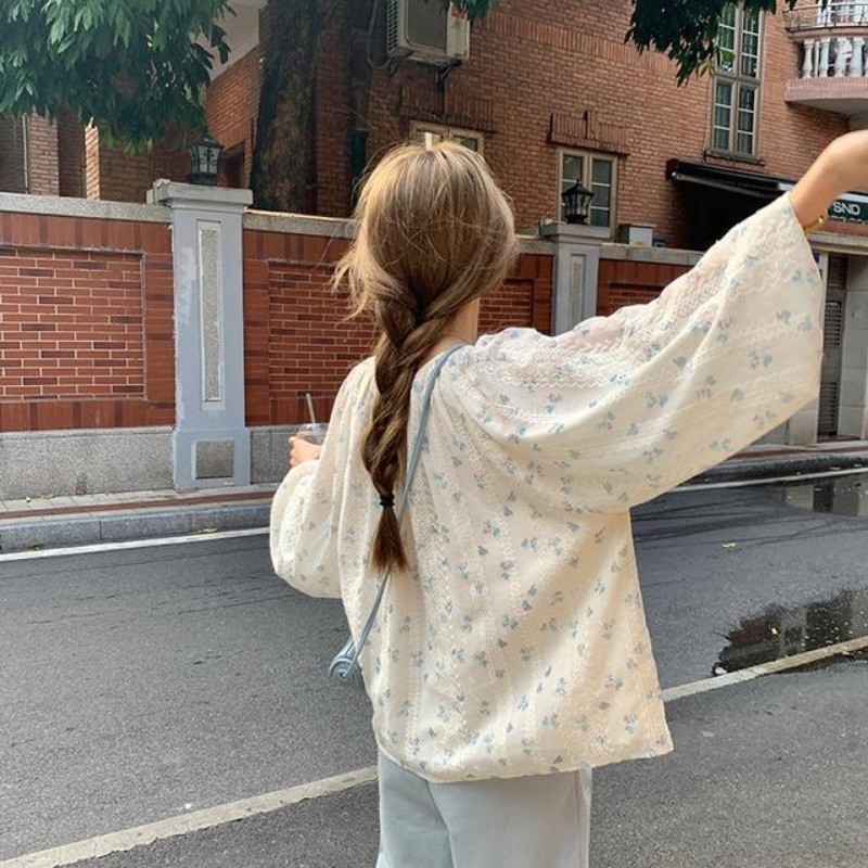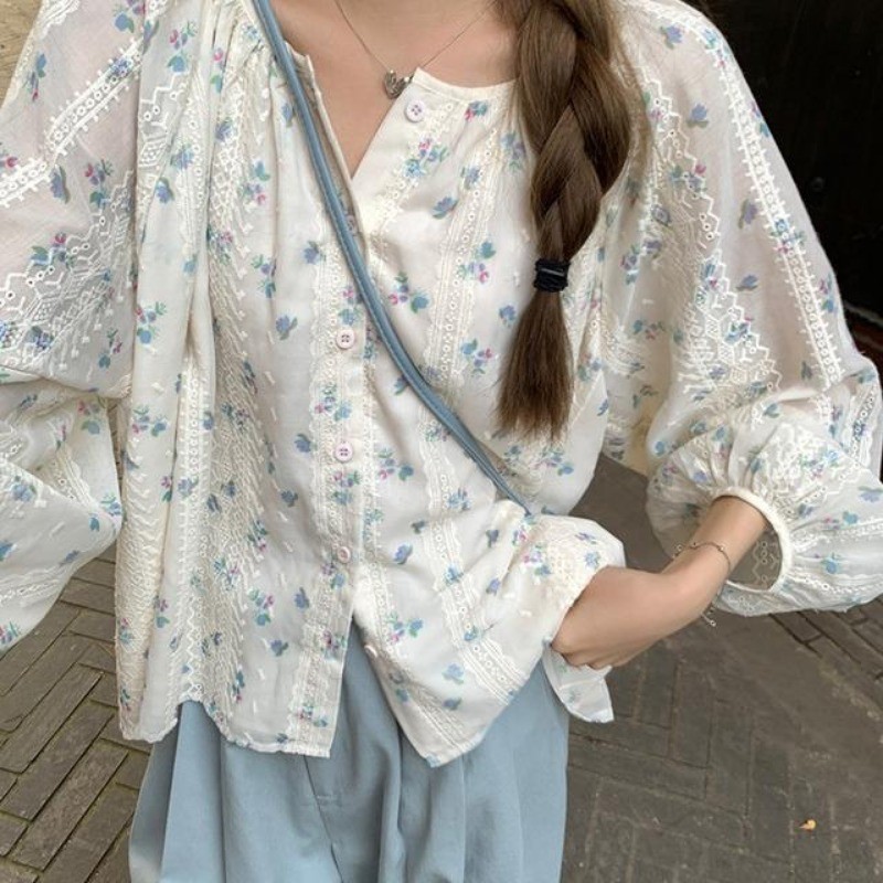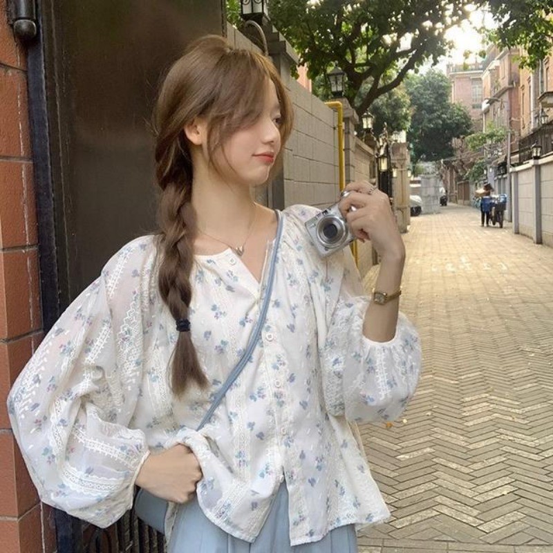 🧡LINNA🧡เย็บปักถักร้อย ดอกไม้เล็ก ๆ แขนยาว เสื้อเชิ้ต เวอร์ชั่นเกาหลี หลวม หวาน สไตล์แฟชั่น