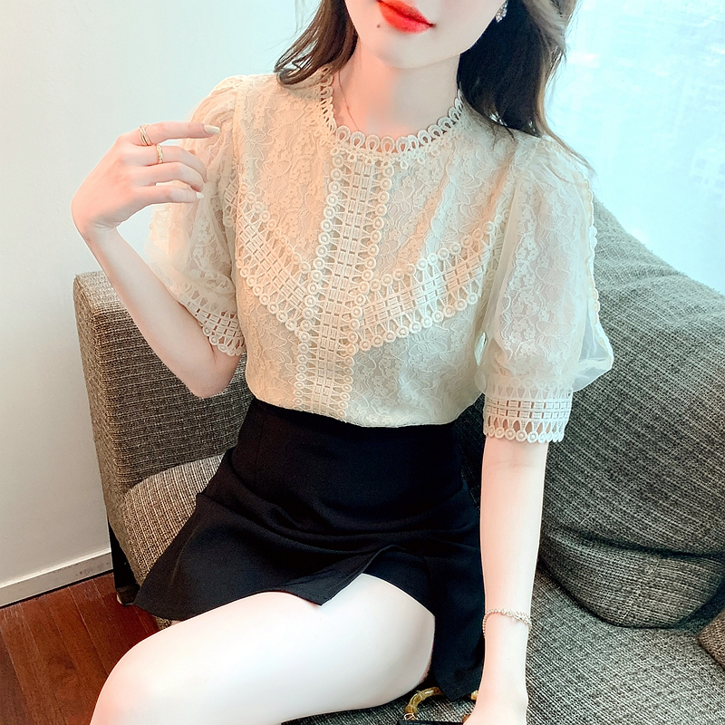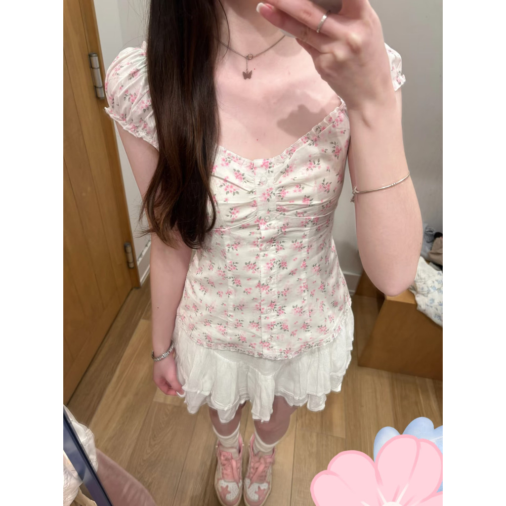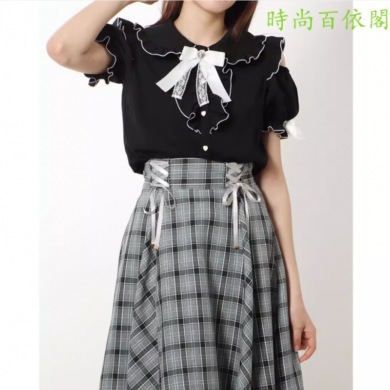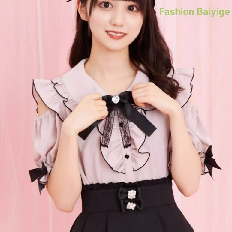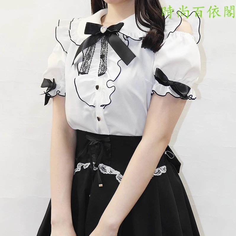 2023ฤดูร้อนญี่ปุ่นหวานน่ารักเหมืองเสื้อปิดไหล่มวลการผลิตด้านบนโลลิต้าเสื้อแขนสั้นญี่ปุ่นสาวนุ่มสาว
