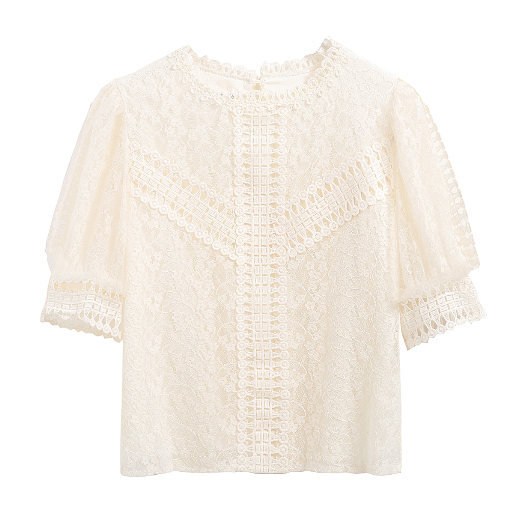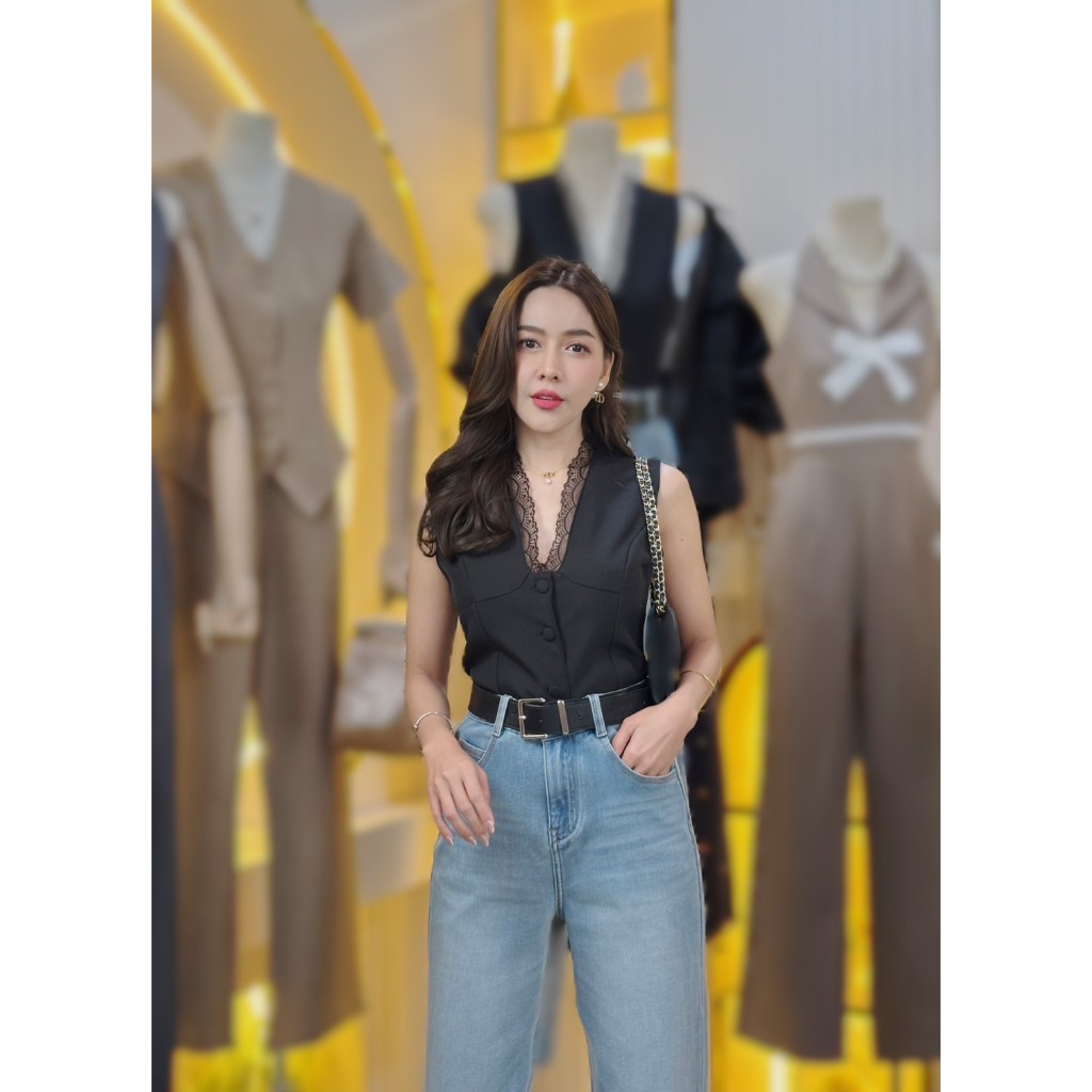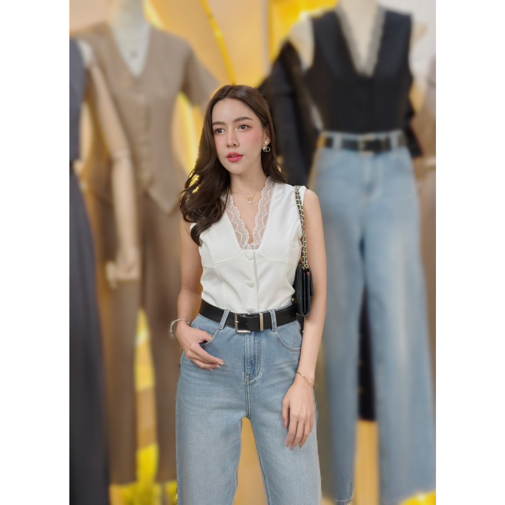87655 Lace Trim Single-Breasted Slim-Fit เสื้อแขนสั้น