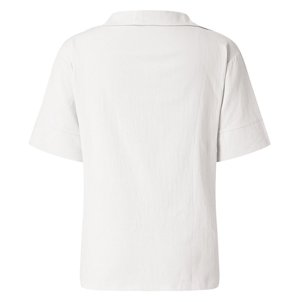 2024 ผู้หญิงครึ่งแขนผ้าฝ้ายผ้าลินินเสื้อคอวีสีทึบเสื้อลําลองหลวม