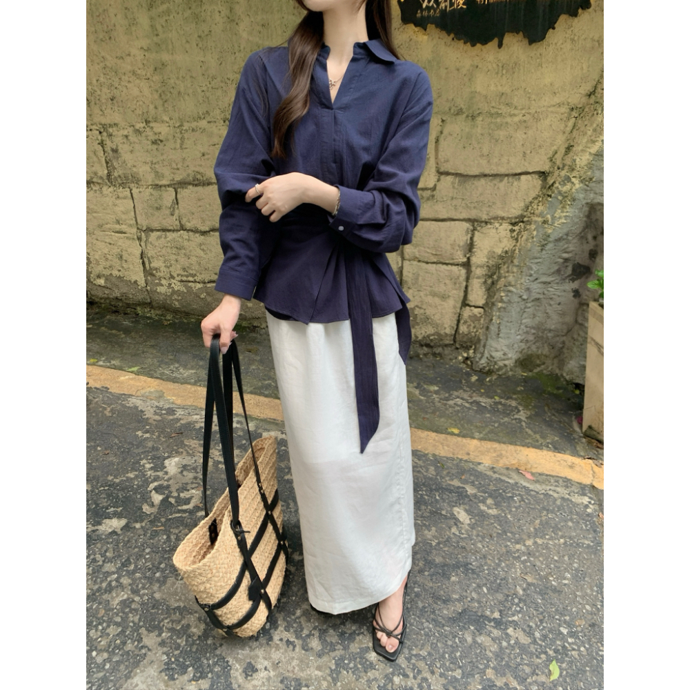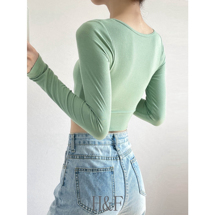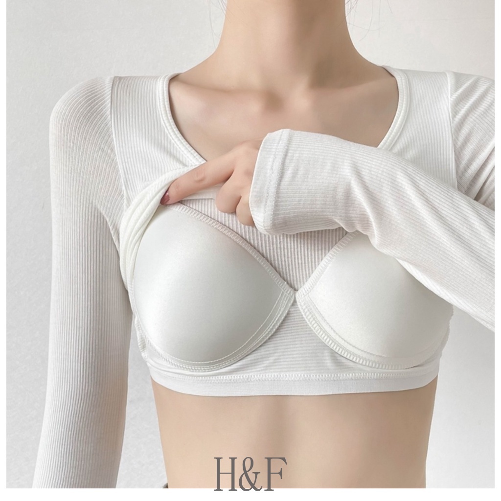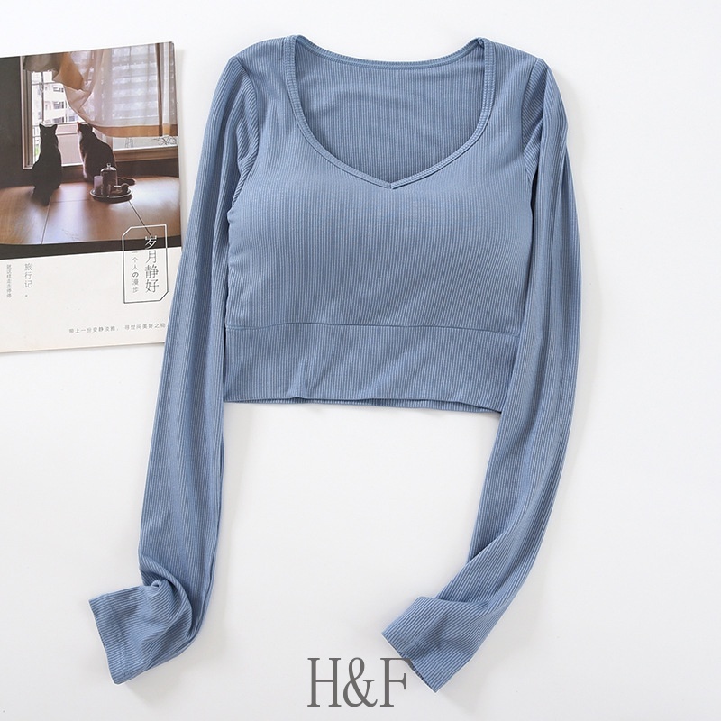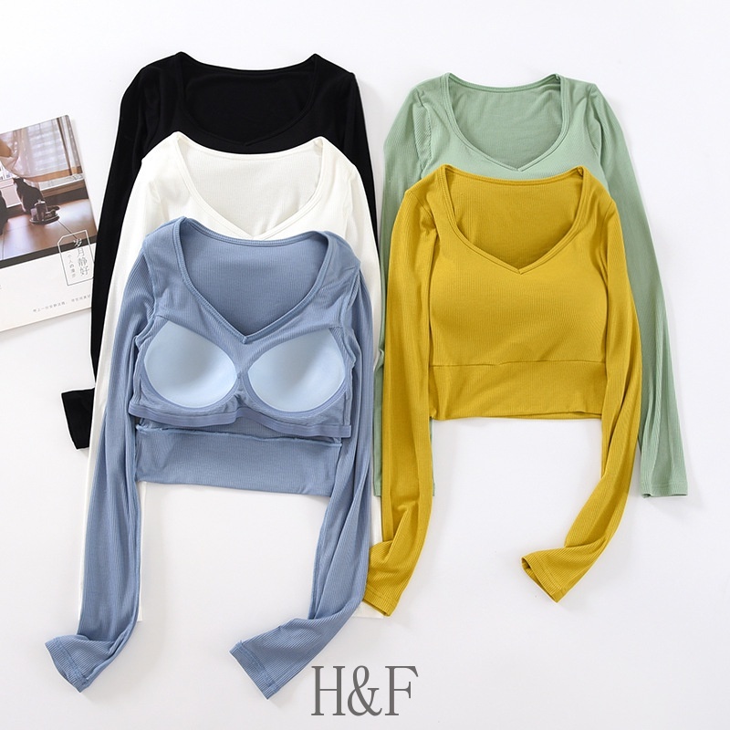 2 in 1 เสื้อครอปท็อป คอวี แขนยาว สีพื้น สไตล์เกาหลี เซ็กซี่ สําหรับผู้หญิง