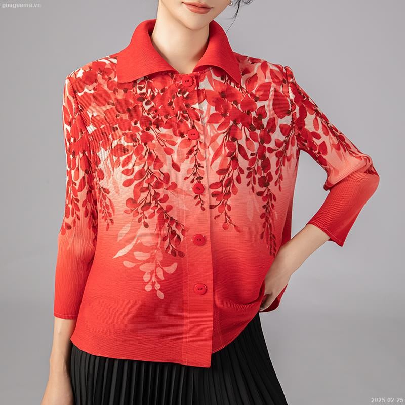 A38//เสื้อคอจีนแขนศอกใบไม้ผ้าไหมอิตาลี ฟรีไซร์38-42นิ้ว ยาว24นิ้ว หน้าผ้า42นิ้ว ราคา119บาท