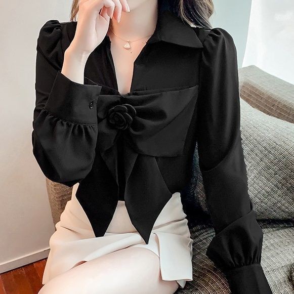 2025 ฤดูใบไม้ผลิฤดูใบไม้ร่วงสไตล์ใหม่เสื้อชีฟองฝรั่งเศสด้านบน